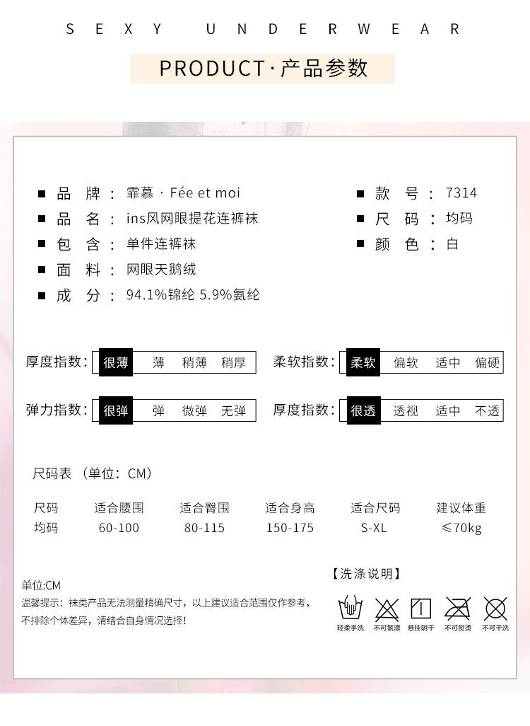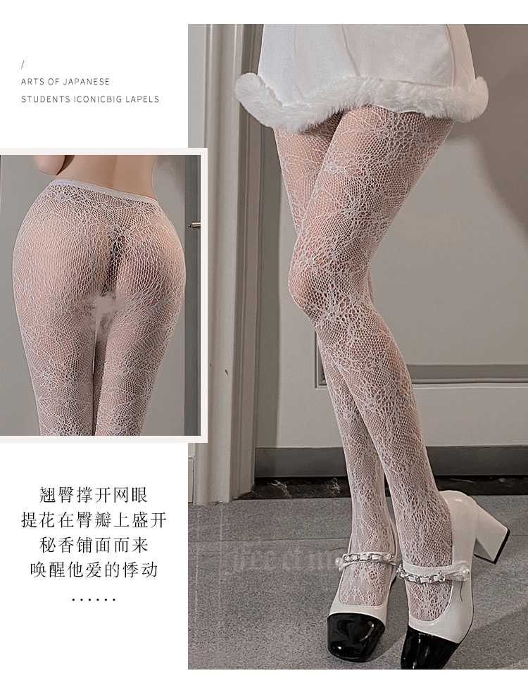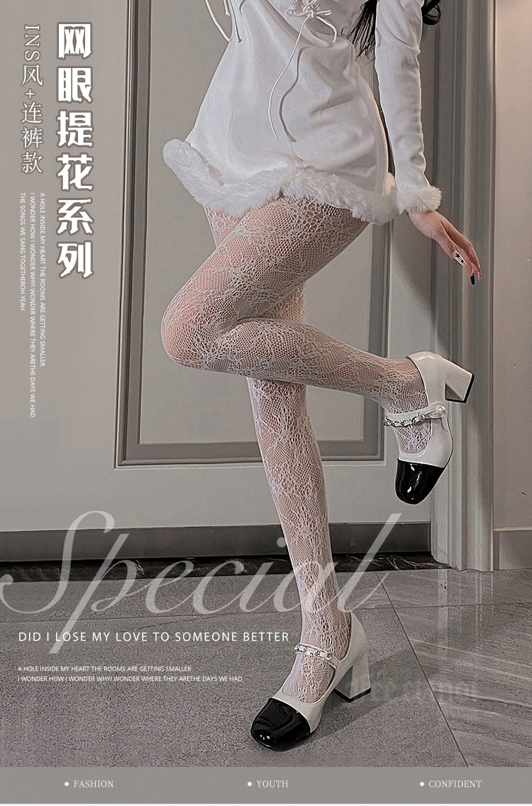 霏慕 ins风网眼提花连袜裤7314 性感丝袜纯欲情趣内衣白丝