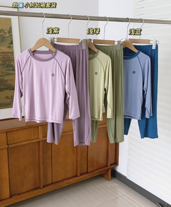 第4 款: 小树长袖套装 💗 四针工艺套装 无骨缝合丝毫感受不到缝纫的痕迹 领口撞色设计厚板立体印花怎么洗都不变形 💗 给孩子挑选家居服,细节之处往往藏着大讲究。领口作为与孩子肌肤密切接触的关键部位,其设计不容小觑 💗款式简洁利落,后领包边能避免摩擦孩子幼嫩肌肤,柔和的线条完美贴合颈部曲线,不会带来丝毫束缚感