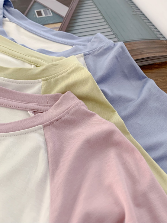 50支优可丝面料,柔软爽滑到极致~3个冰淇淋系撞色超治愈! 100%优质木源原料♻️环保可降解 具有较好的吸水性、透气性、亲肤性 宝宝穿着毫无束缚感 无论居家玩耍 睡觉 都能感受它的柔软度 像是掉进云朵里☁️ 奶油般触感 所有宝贝都必须拥有!120--160码