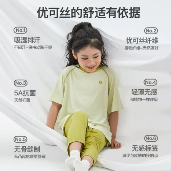🌿把“柔软夏天”带回家【儿童优可丝柔柔家居服系列】触感如云朵般轻盈软糯|比棉更透气|比丝绸更亲肤🔥裸感体验新升级🌬️敏感肌宝宝放心入!