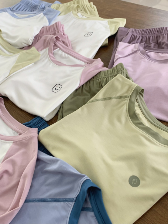 第1款 :笑脸短袖套装 四针工艺套装 无骨缝合 七分裤的设计保护宝宝的膝盖不受伤害 ✔️无骨缝制工艺,贴身穿舒适,亲肤好眠 ✔️面料冰感透气,柔软亲肤有弹性,透气不闷 ✔️ 远超婴幼儿标准,环保无负担,无荧光剂、无甲醛.