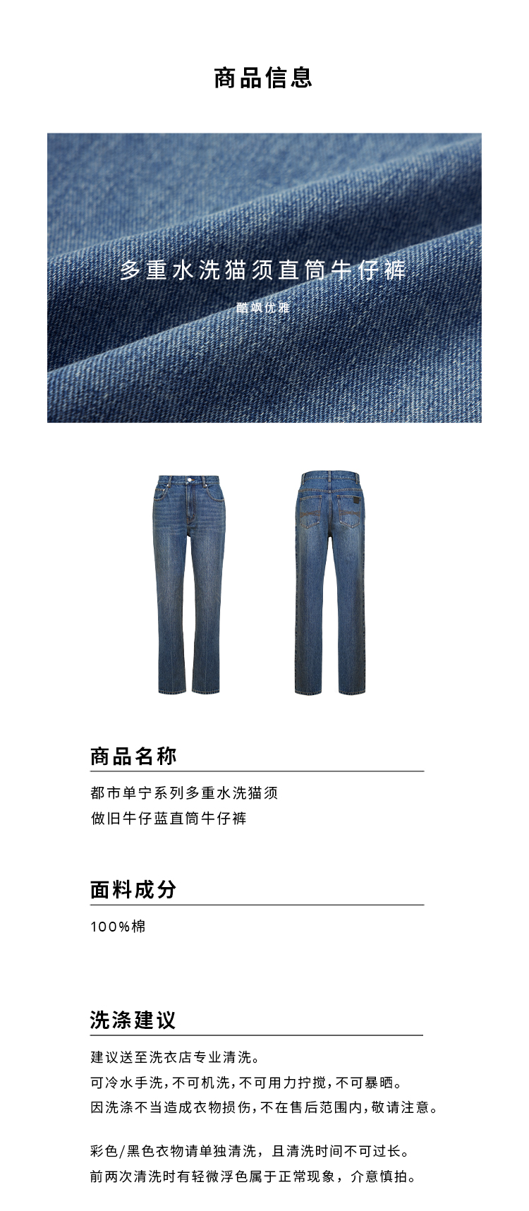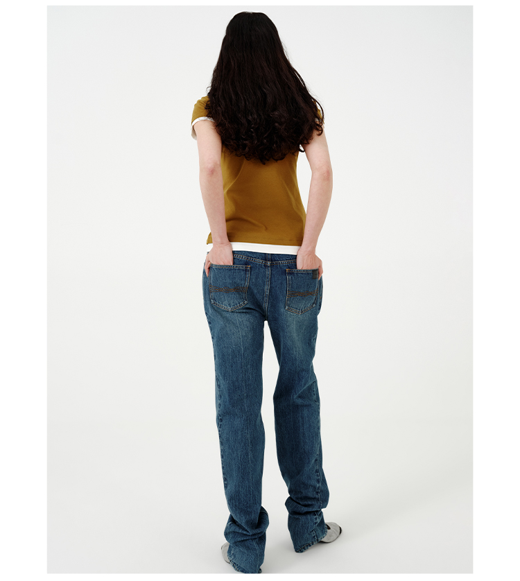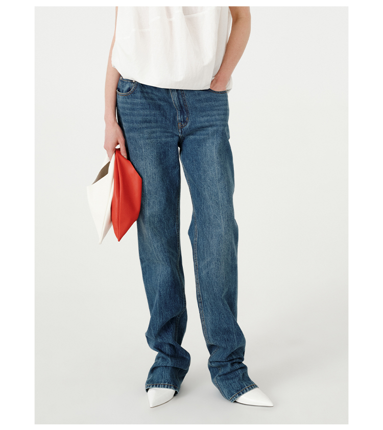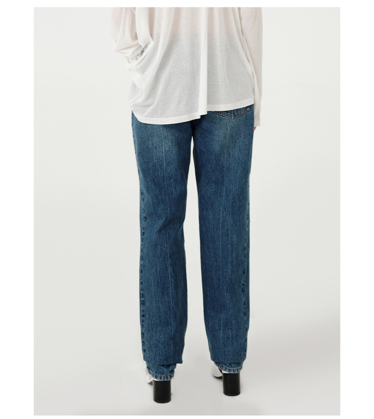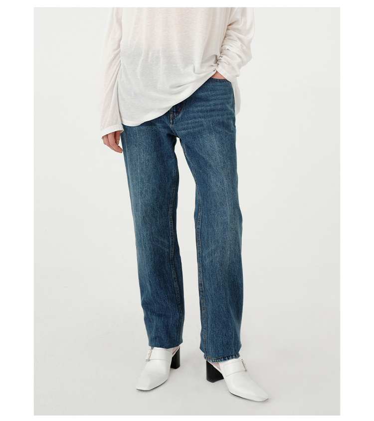 HIDEMI都市单宁系列多重水洗猫须做旧牛仔蓝直筒牛仔裤
