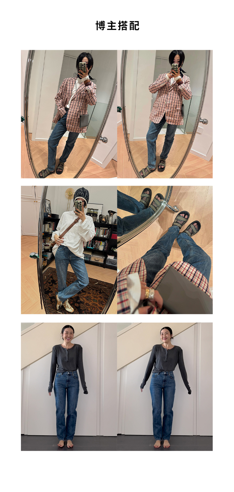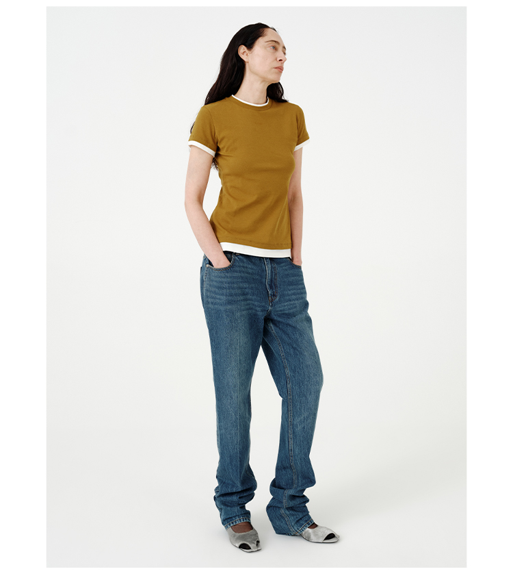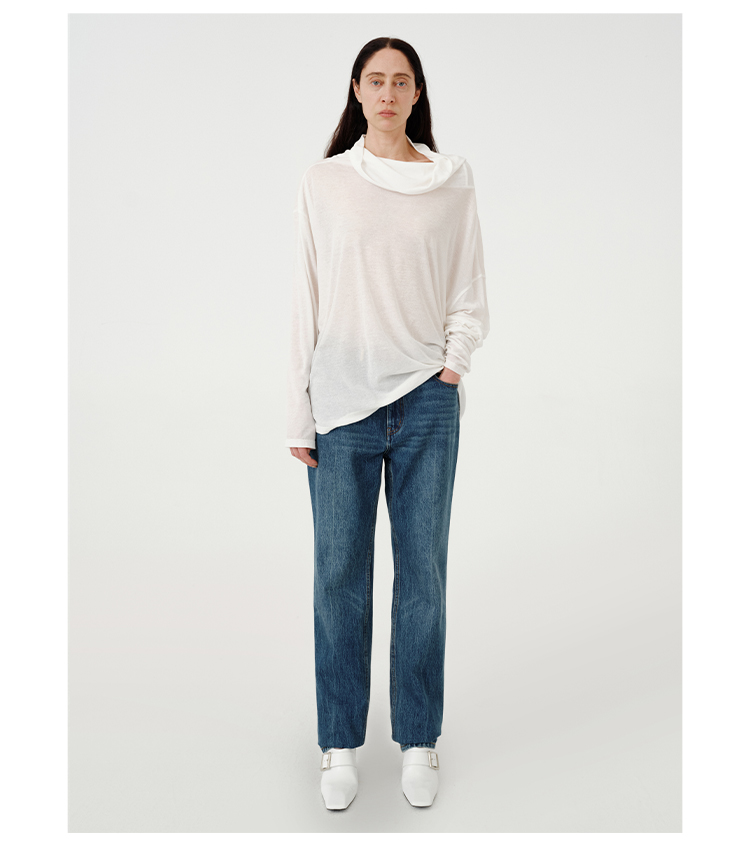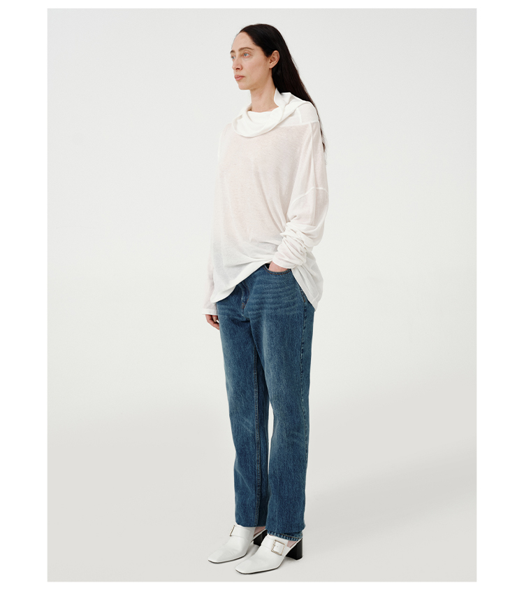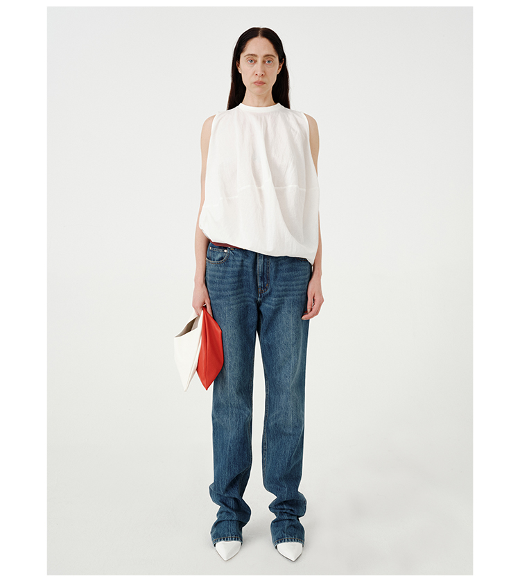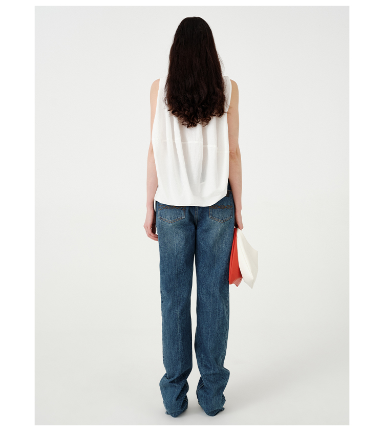 HIDEMI都市单宁系列多重水洗猫须做旧牛仔蓝直筒牛仔裤