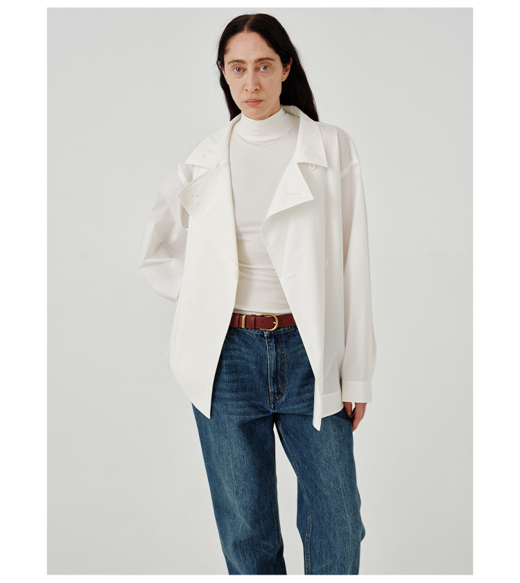 HIDEMI皮毛一体简约圆领短款皮草大衣皮衣