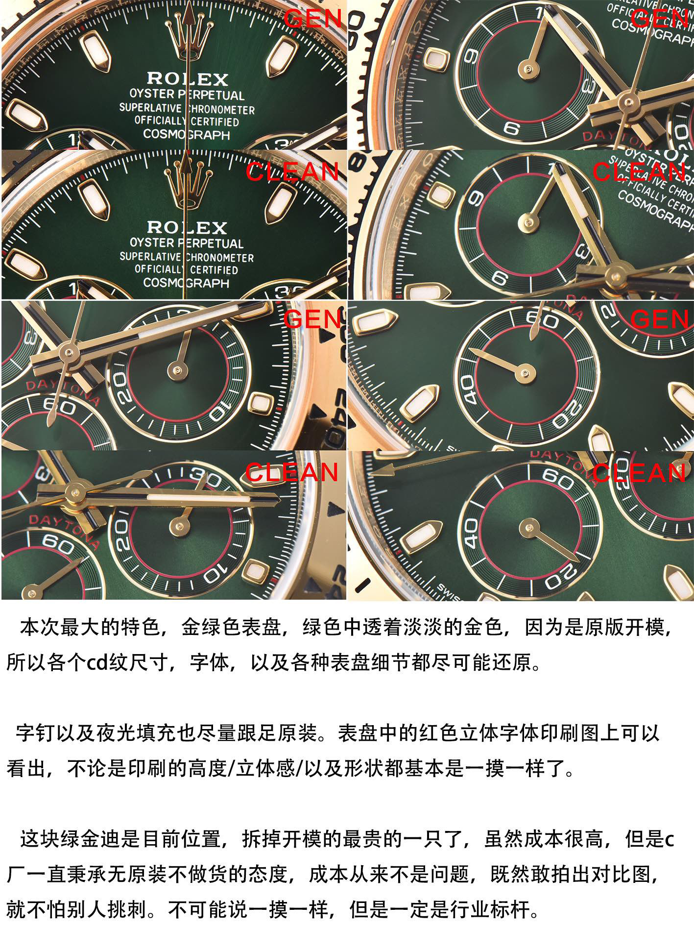 C厂CleaN厂劳力士迪通拿贝母盘款m116508-0007复刻腕表有破绽吗?其实只要是复刻腕表就必然会存在破绽!其实有一些表发来询问这个问题,主要就是想知道复刻腕表能不能充当正品出售而已!在这里可以非常肯定的和各位表友说,不能!只要是复刻腕表就比如存在破绽点,如果真的没有任何破绽,那么厂家自己都拿去卖了,不可能给机会出来的!