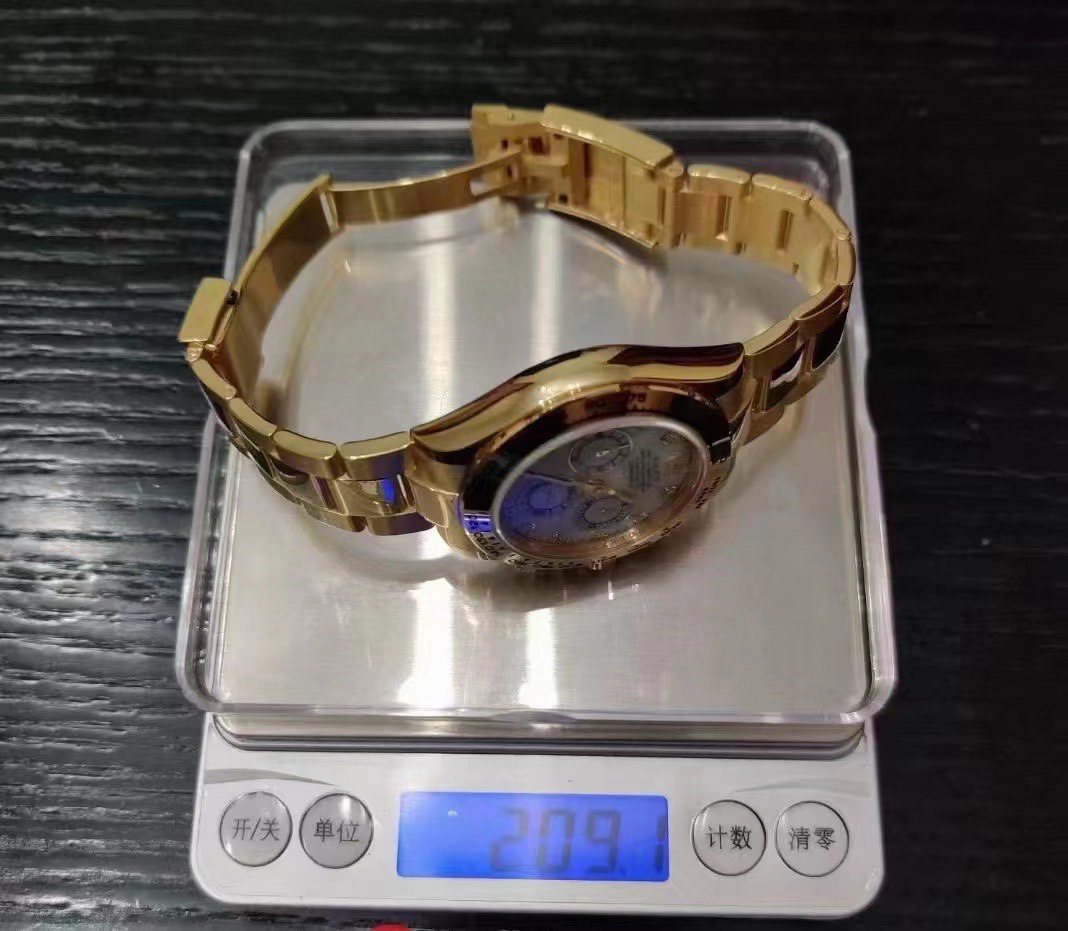 而且有C厂这款劳力士迪通拿有一个非常好的鉴定真假的方式,那就是拿去称重!不过这些都是针对贵金属款式的迪通拿,毕竟为了 控制成本,复刻腕表不可能同步原装采用贵金属来制作表壳!也真是因为如此,这款C厂CleaN厂劳力土迪通拿贝母盘款m116508-0007复刻腕表上称后, 对于了解原装重量的人来说,就是最好的辨别点!不过视觉上各位表友无需担心,为了最大限度地还原原装视觉效果, C厂采用904精钢材质制作后,使用了特别熟练的电镀技术,在C厂的精细抛光下,触摸和佩戴手感非常舒适,乃至于媲美正品!