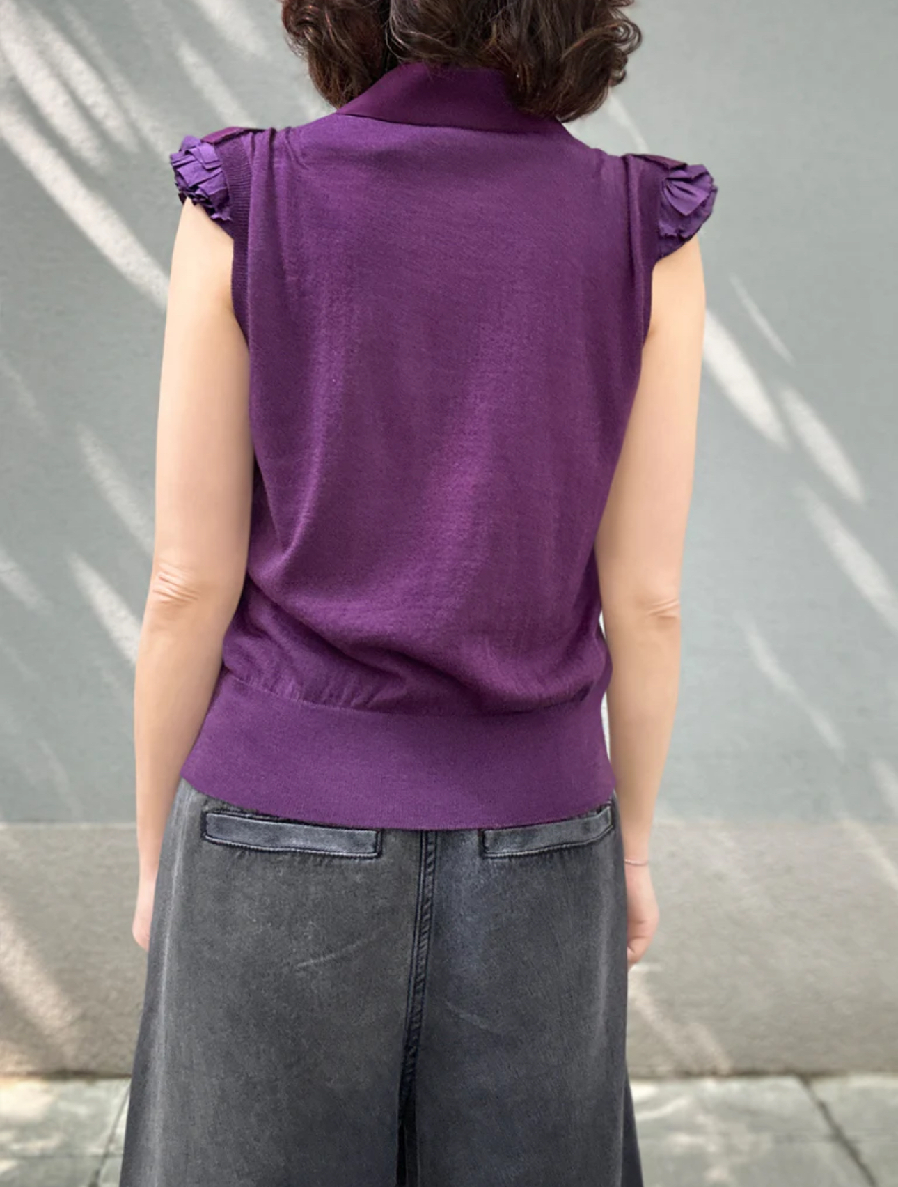 TYNVIE 花边肩饰针织马甲开衫-梅子色