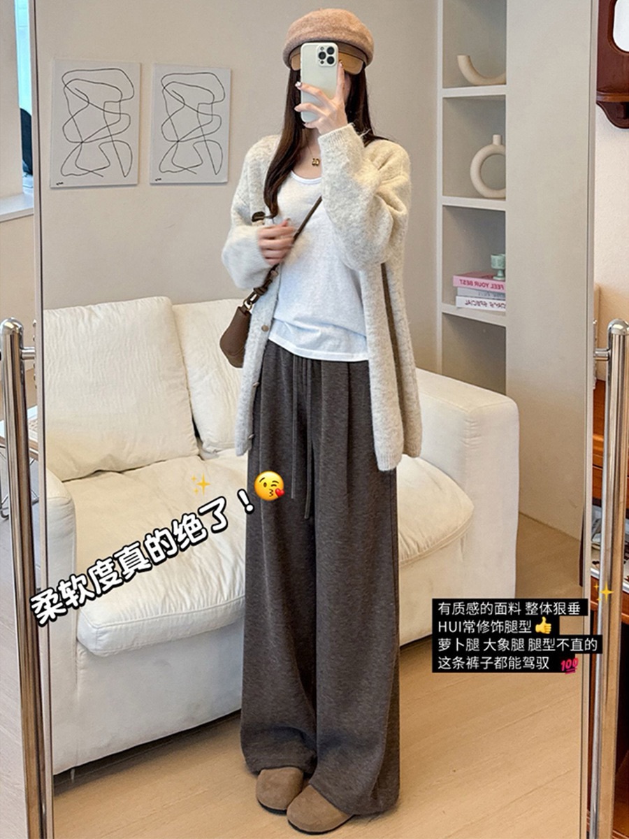 买手优选加绒糯米裤子加绒高腰休闲直筒阔腿裤167994406