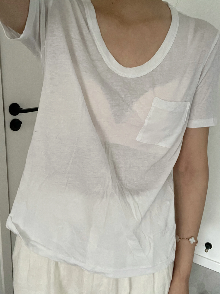 像平时大家很喜欢的T恤,就算穿了同色系的内衣,一样很透❌❌