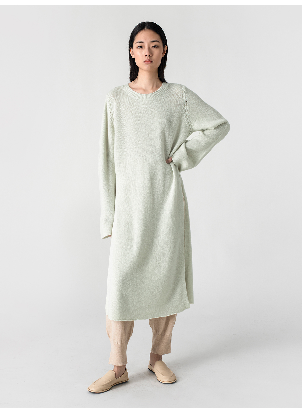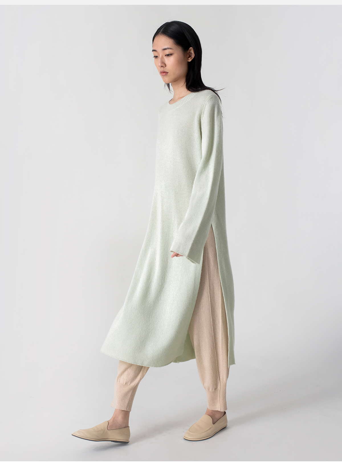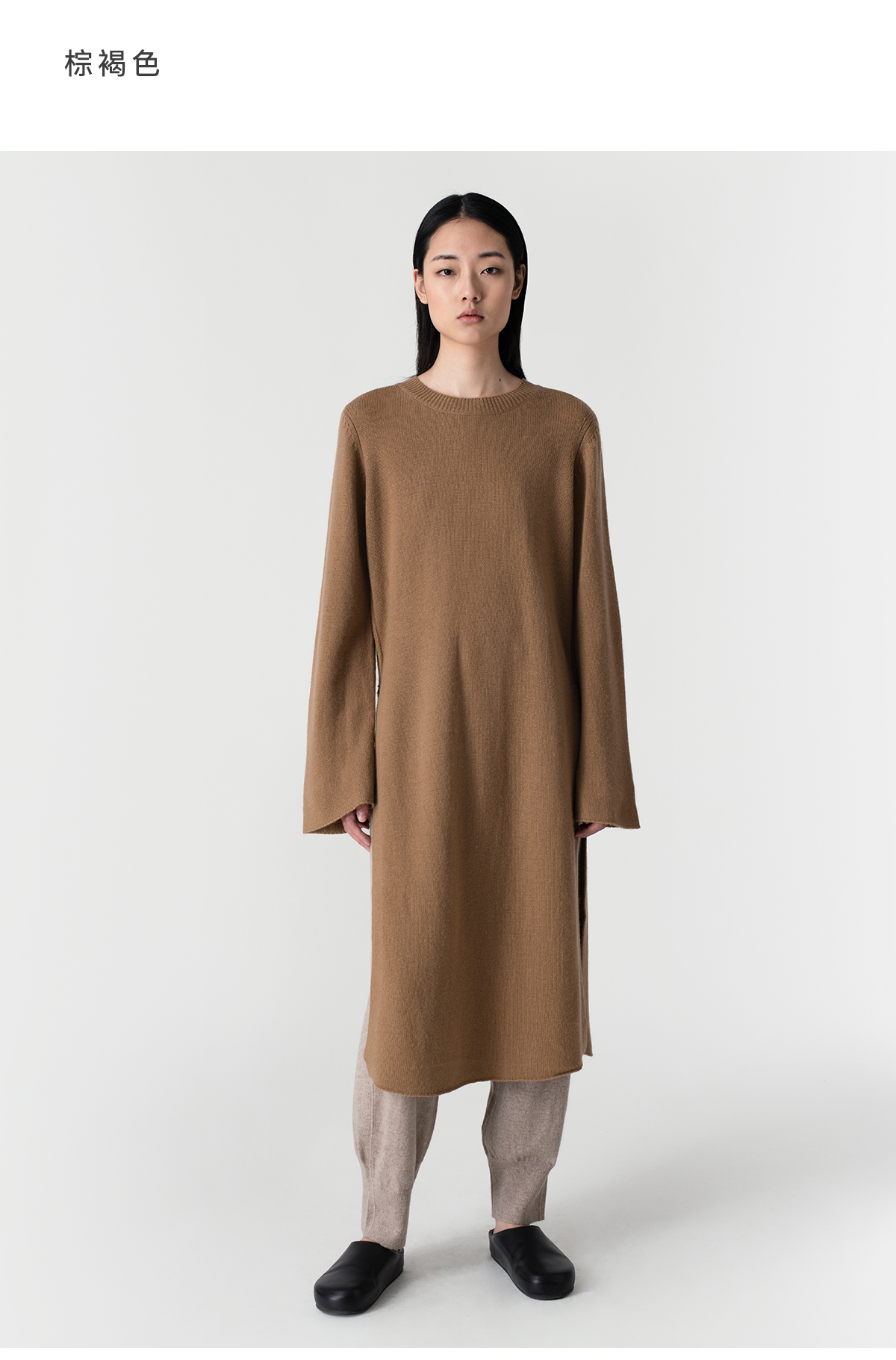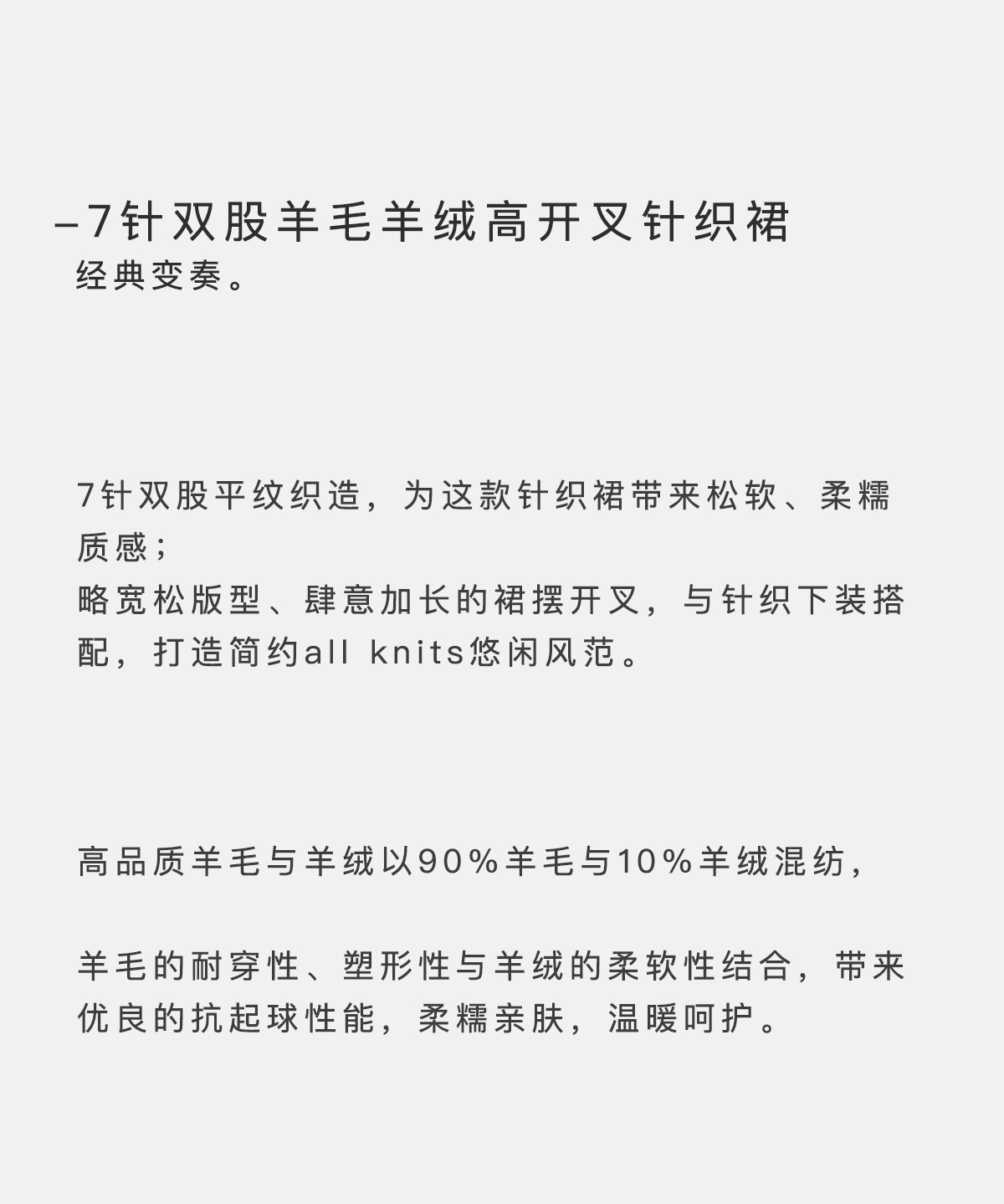 322工房极简造型羊毛羊绒高开叉连衣裙2023春夏款宽松针织裙B001