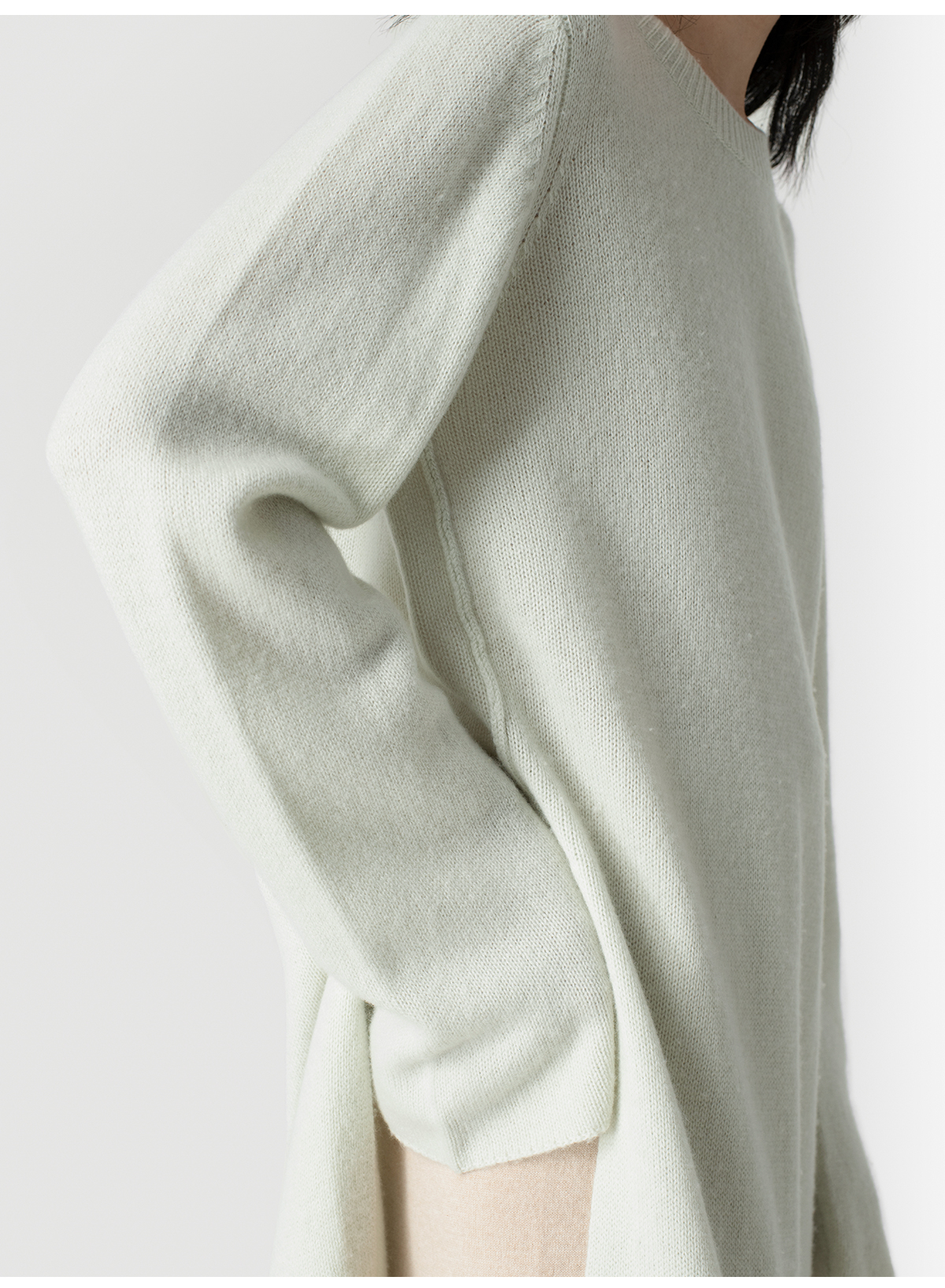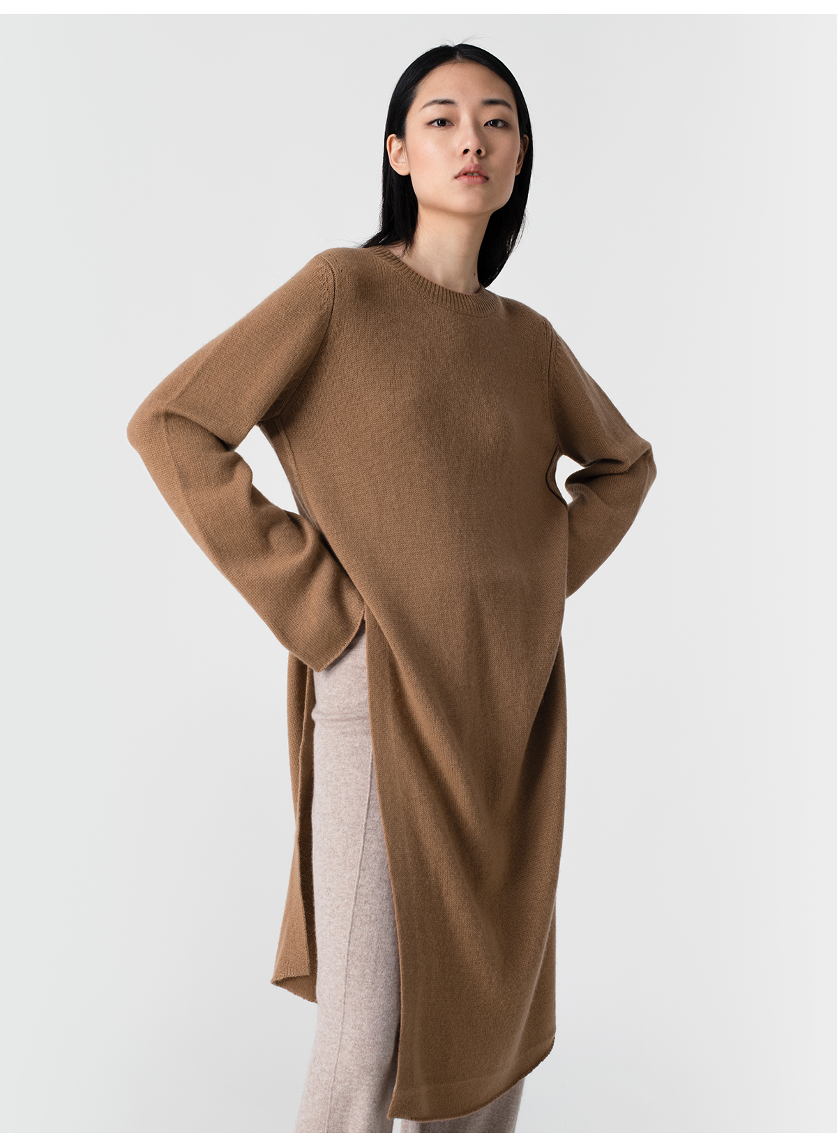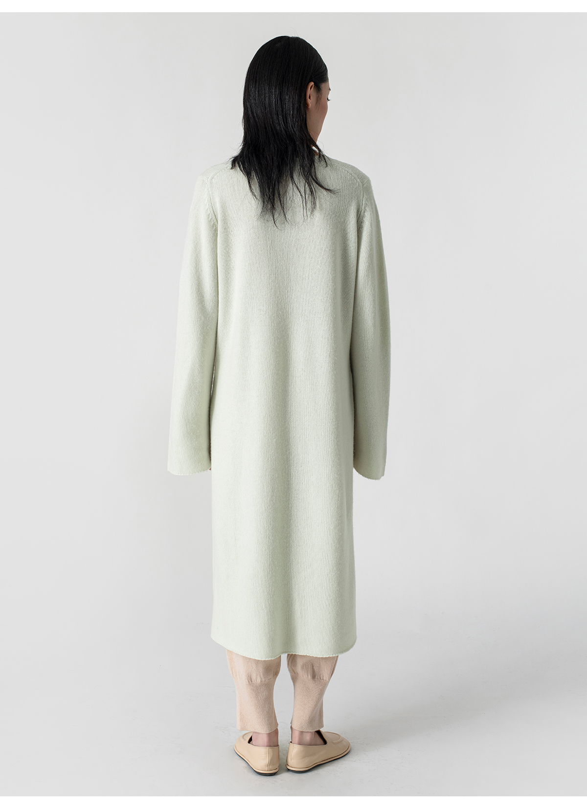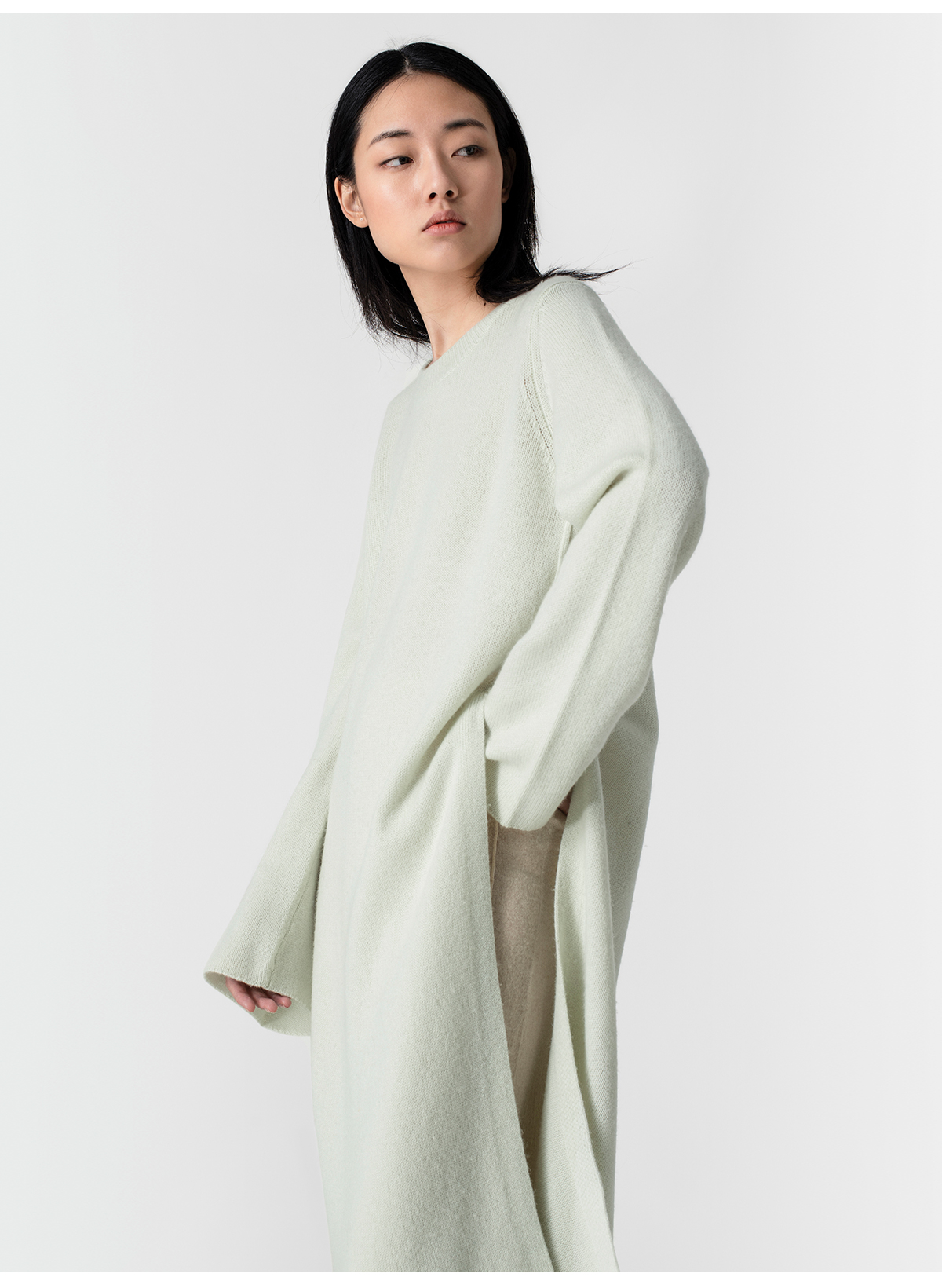 322工房极简造型羊毛羊绒高开叉连衣裙2023春夏款宽松针织裙B001
