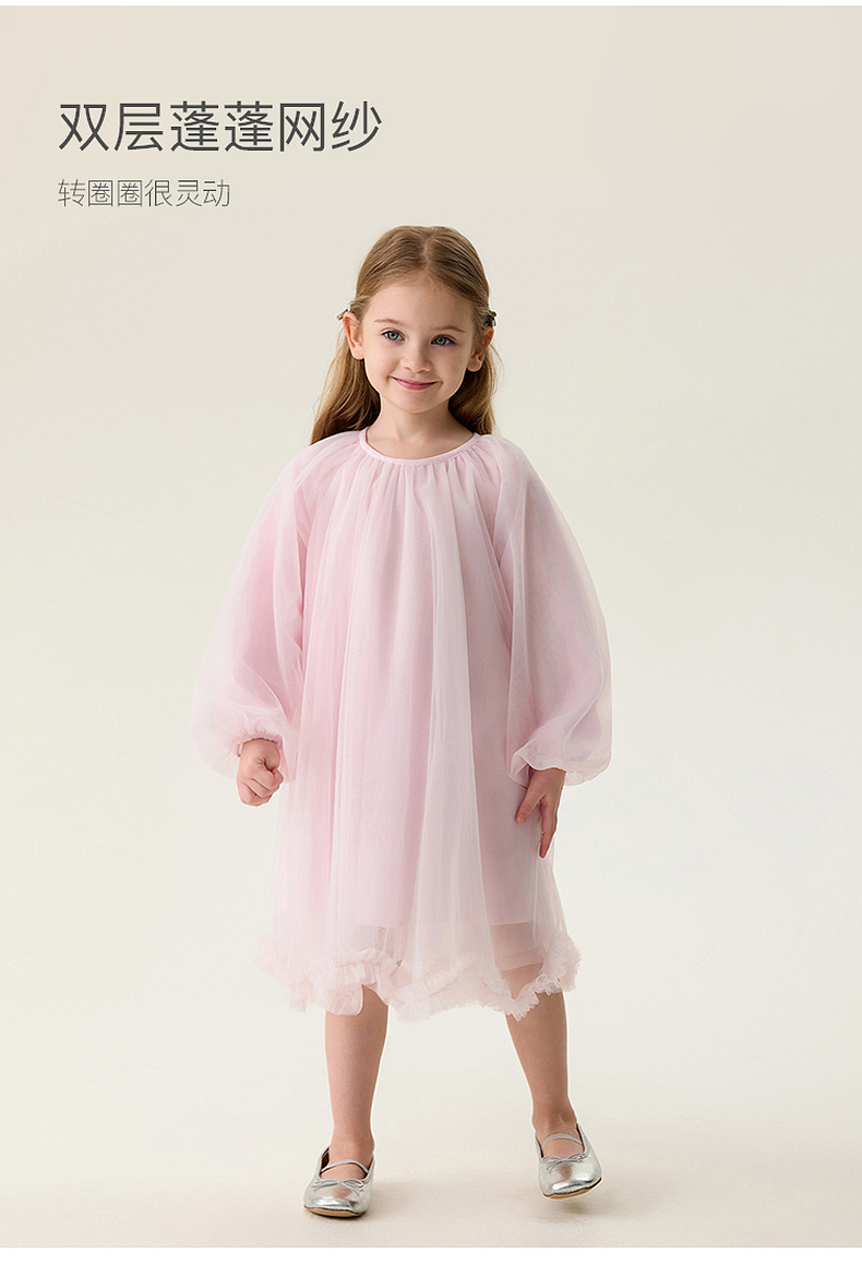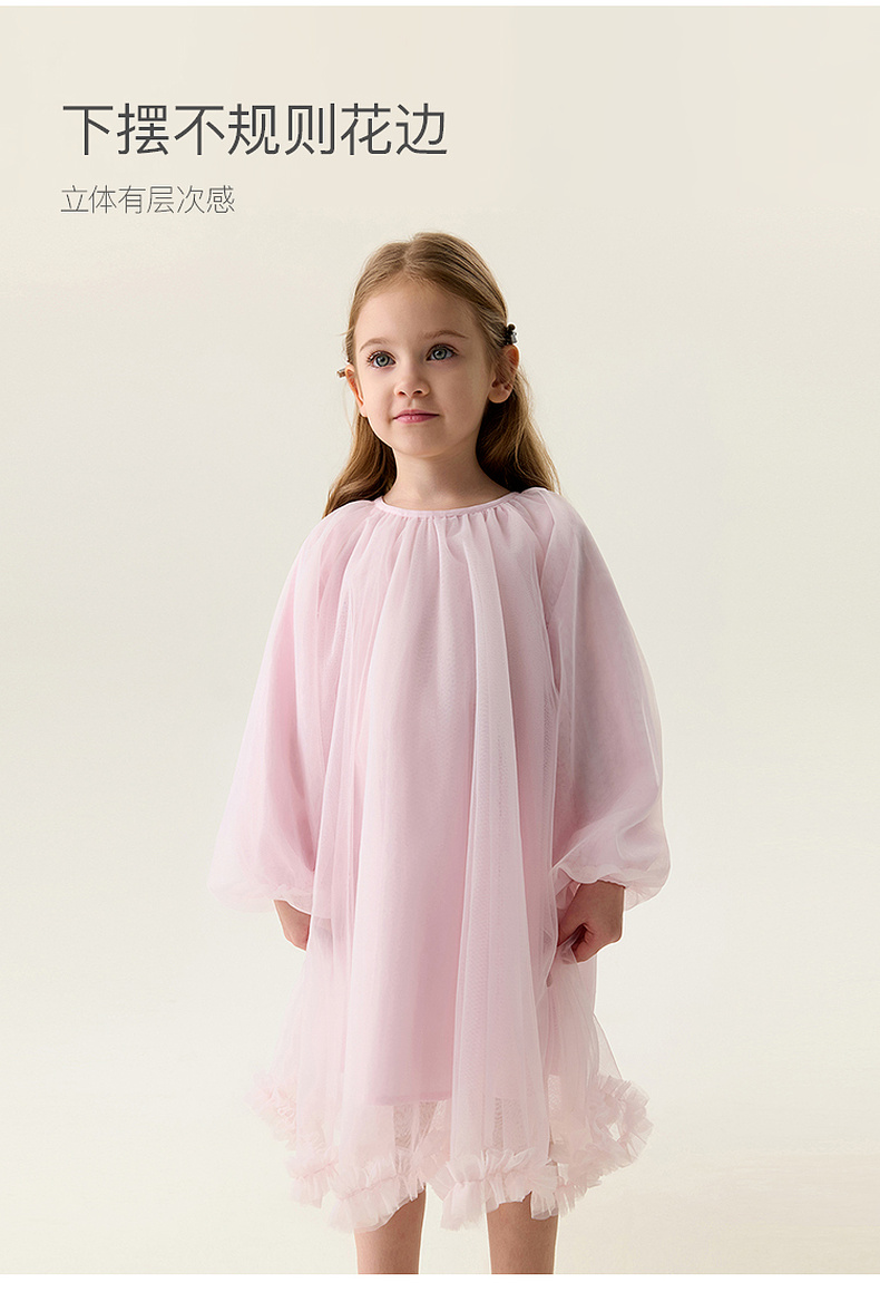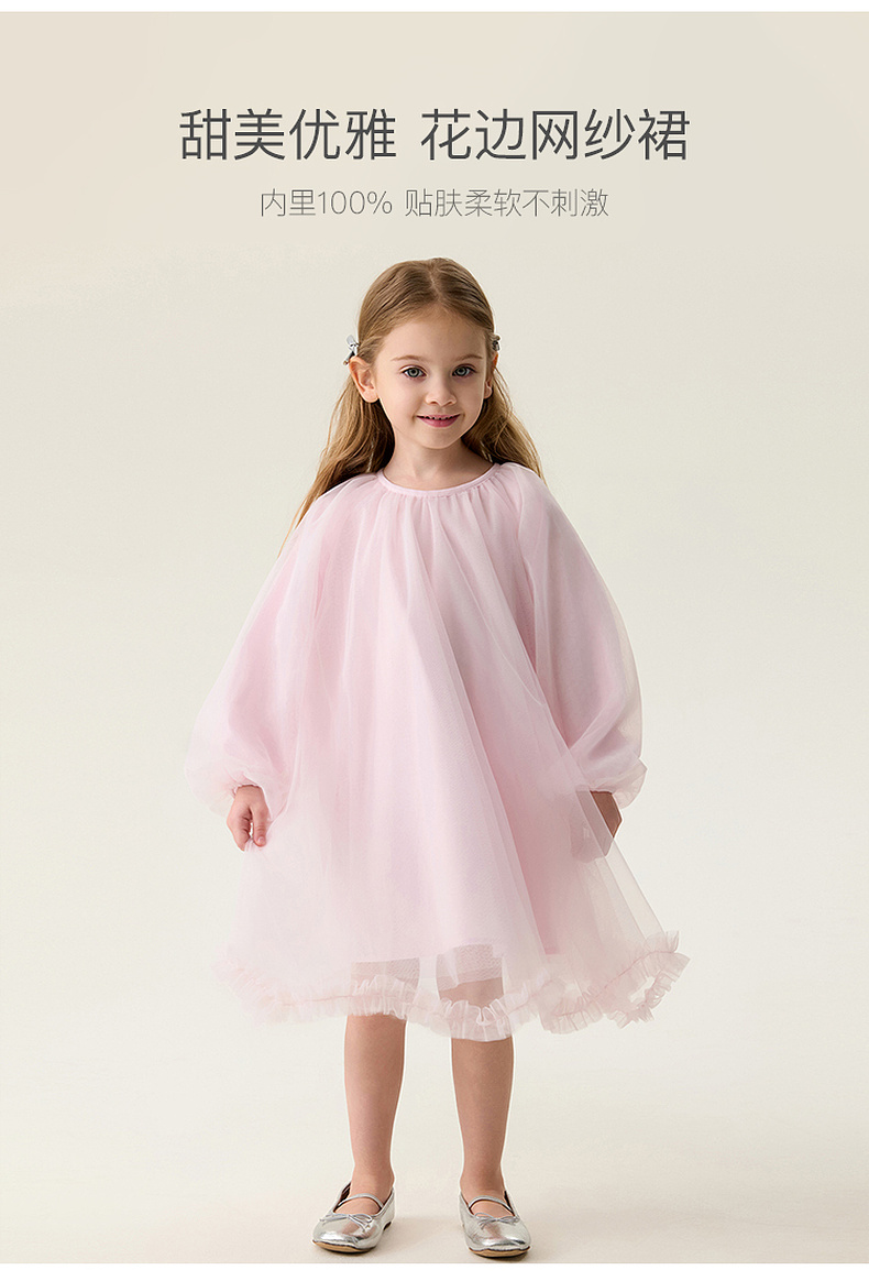 马克珍妮甜美优雅女童花边网纱连衣裙2026年春装新款560137