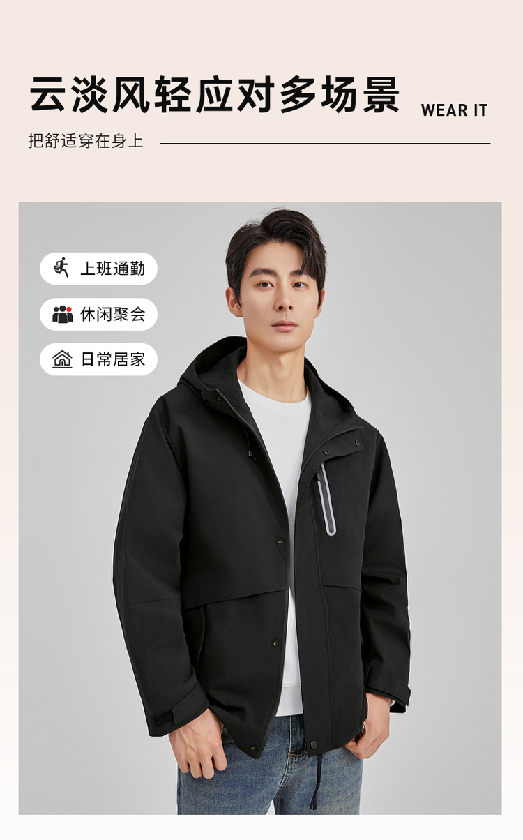 圣得西男士户外休闲连帽夹克2025年秋季新款中青年百搭冲锋式外套