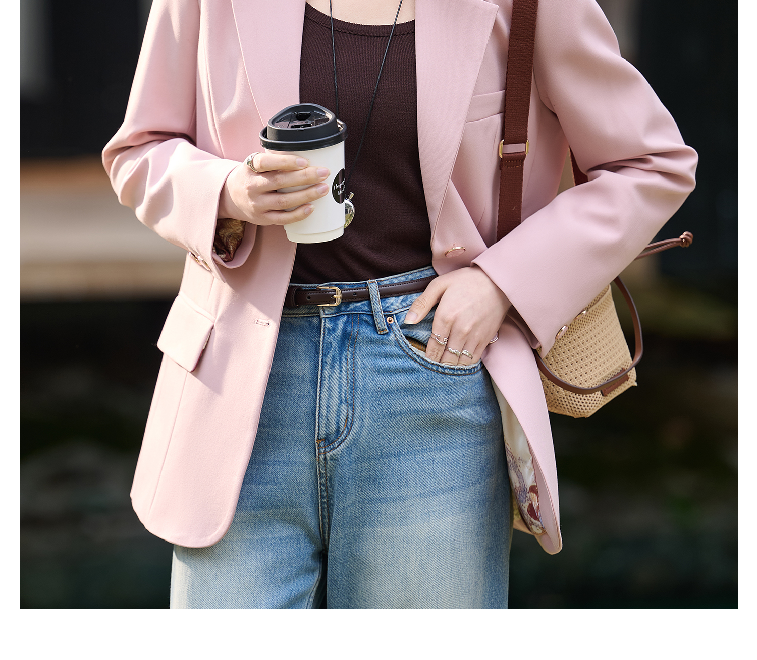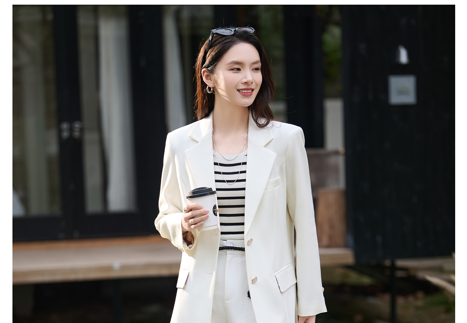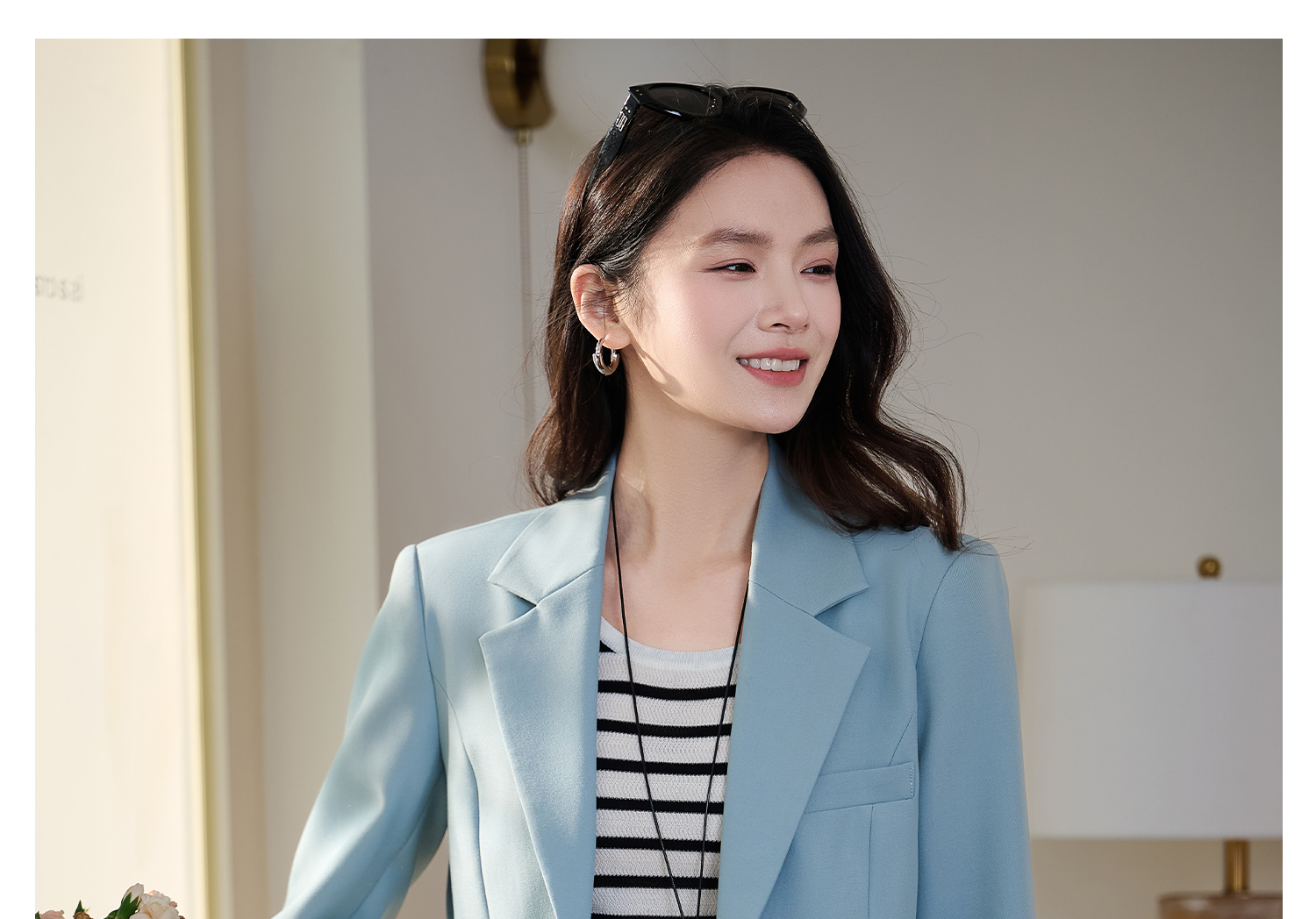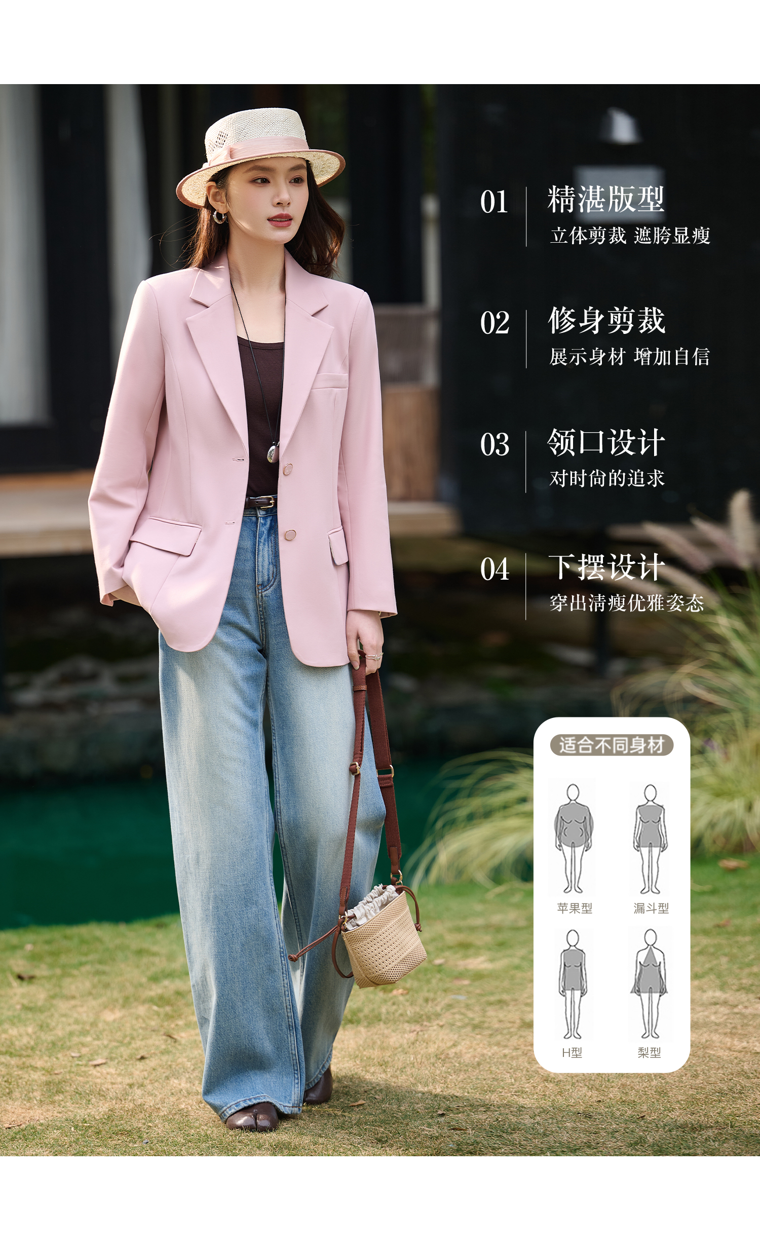 米思阳2026春季新款时尚气质纯色西装干练宽松显瘦垫肩外套女1076