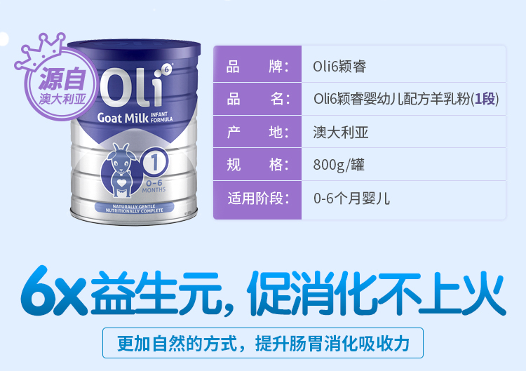 HNMG 澳大利亚Oli6婴幼儿羊奶粉1段800g 新包装