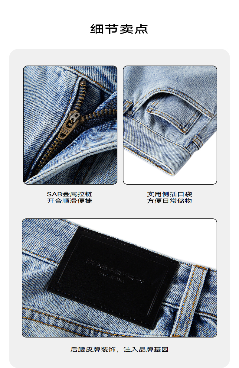 GXG男装 定织竖条肌理宽松直筒阔腿擦色牛仔裤 2025秋季新品