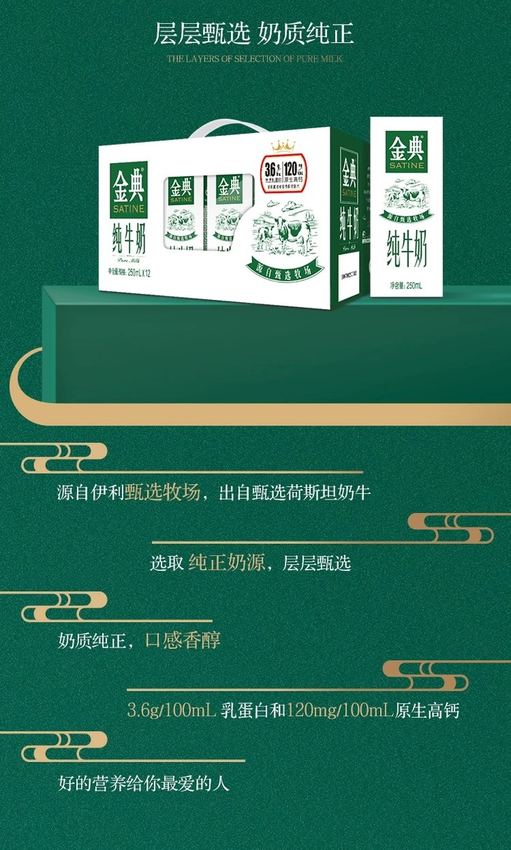 伊利金典纯牛奶250ml*12盒/箱