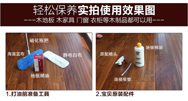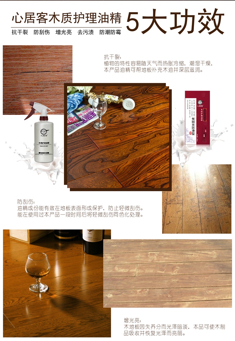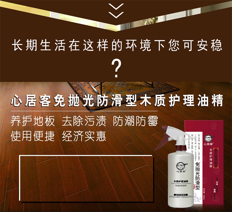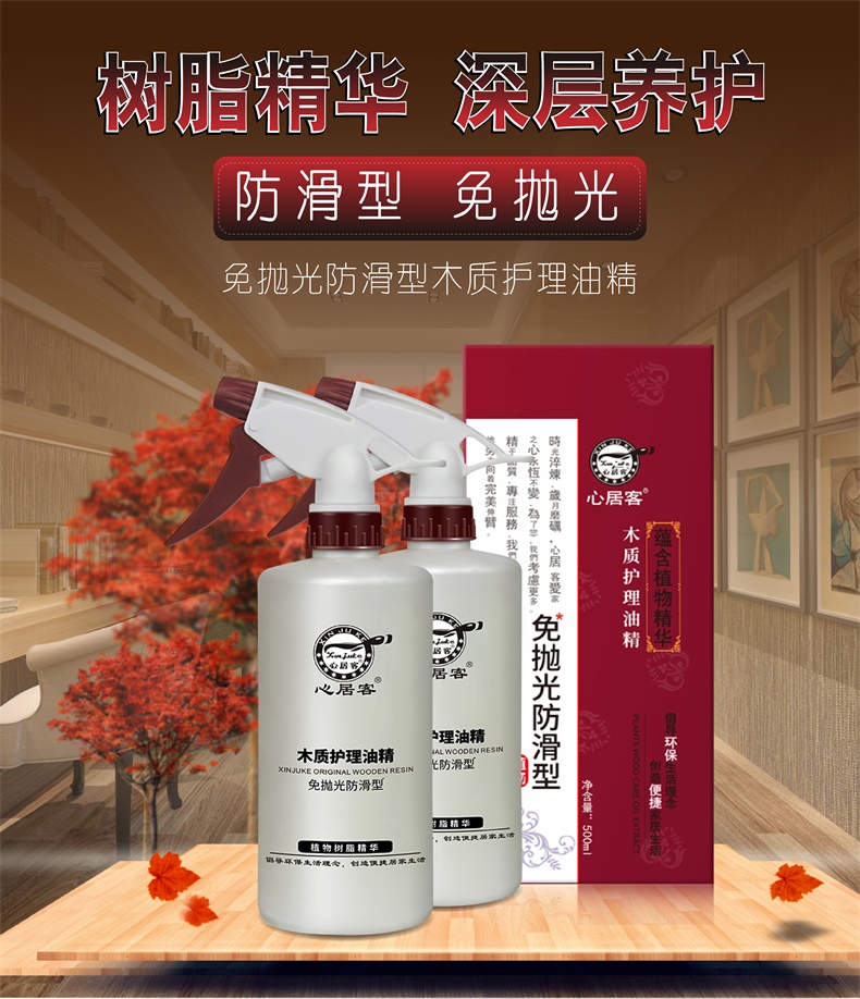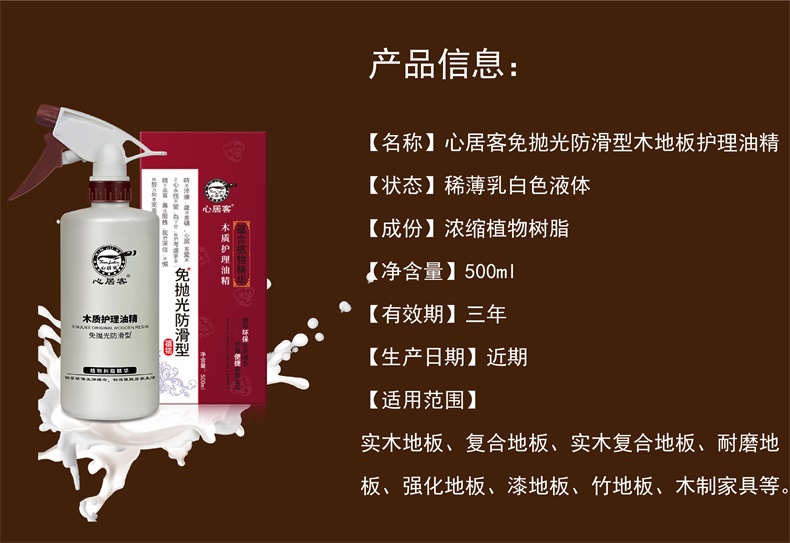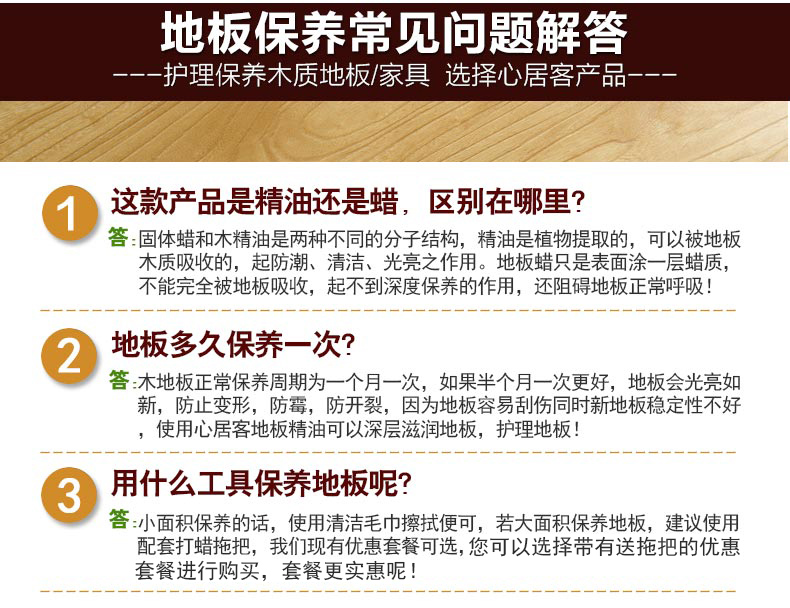 心居客地板蜡实木复合原木地板精油保养500ml*3瓶 送打蜡拖把+套布
