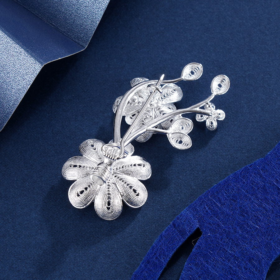 【寓意】:银花丝勾勒出花朵轮廓,明丽嫣然,似春雪氤氲,妙不可言。一枚格调十足的气质胸针,寓意美丽年年,好运连绵。