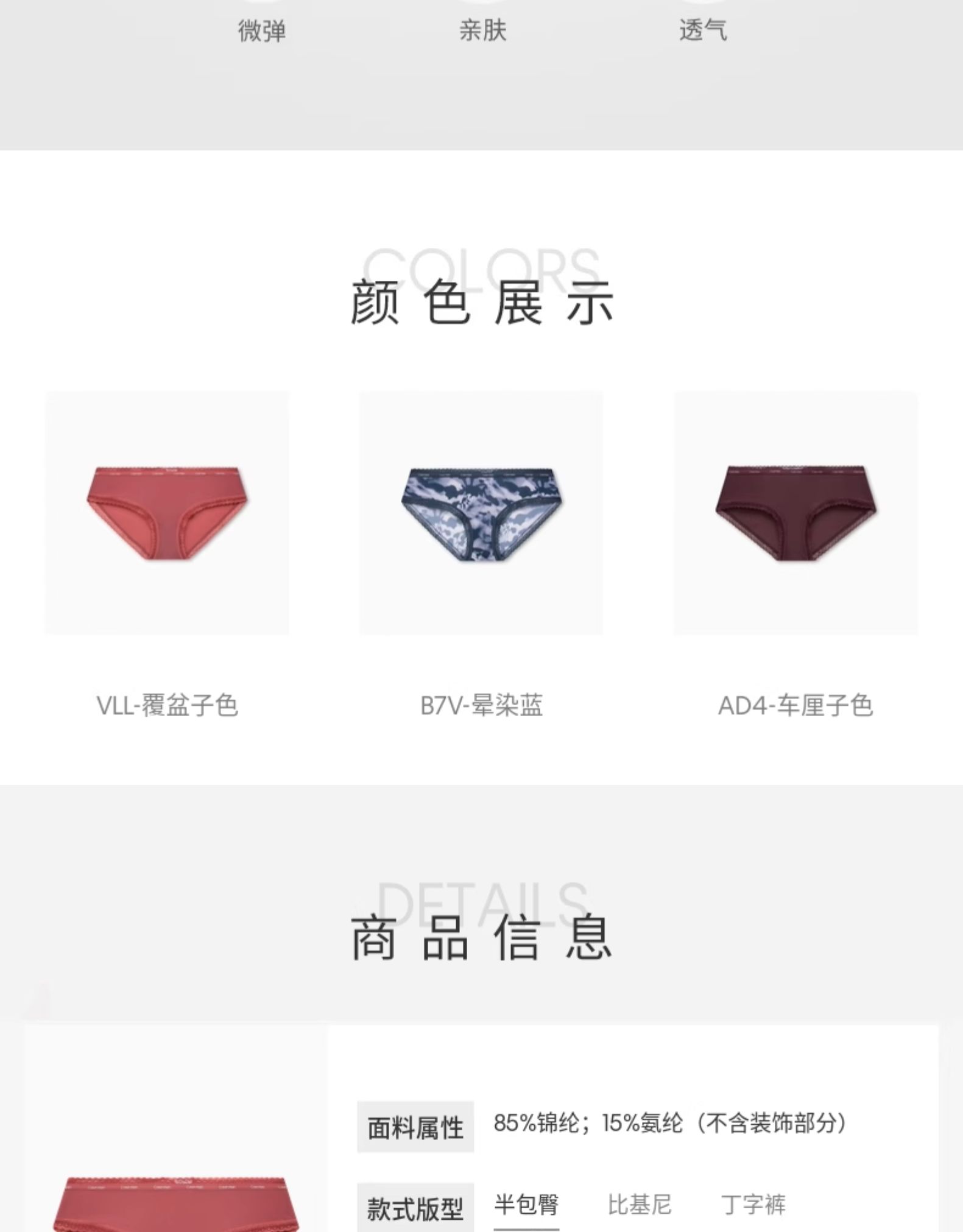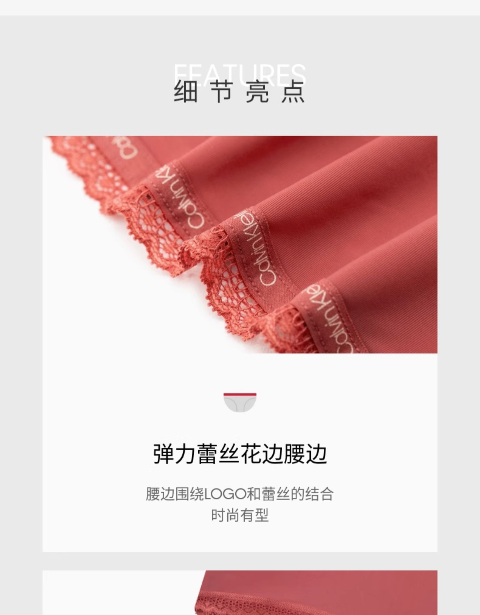 【海南专供价】CKU新款女士性感蕾丝拼接防夹臀半包臀三角内裤QD3767VLL