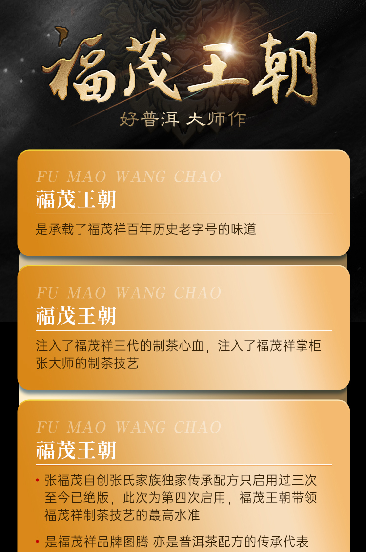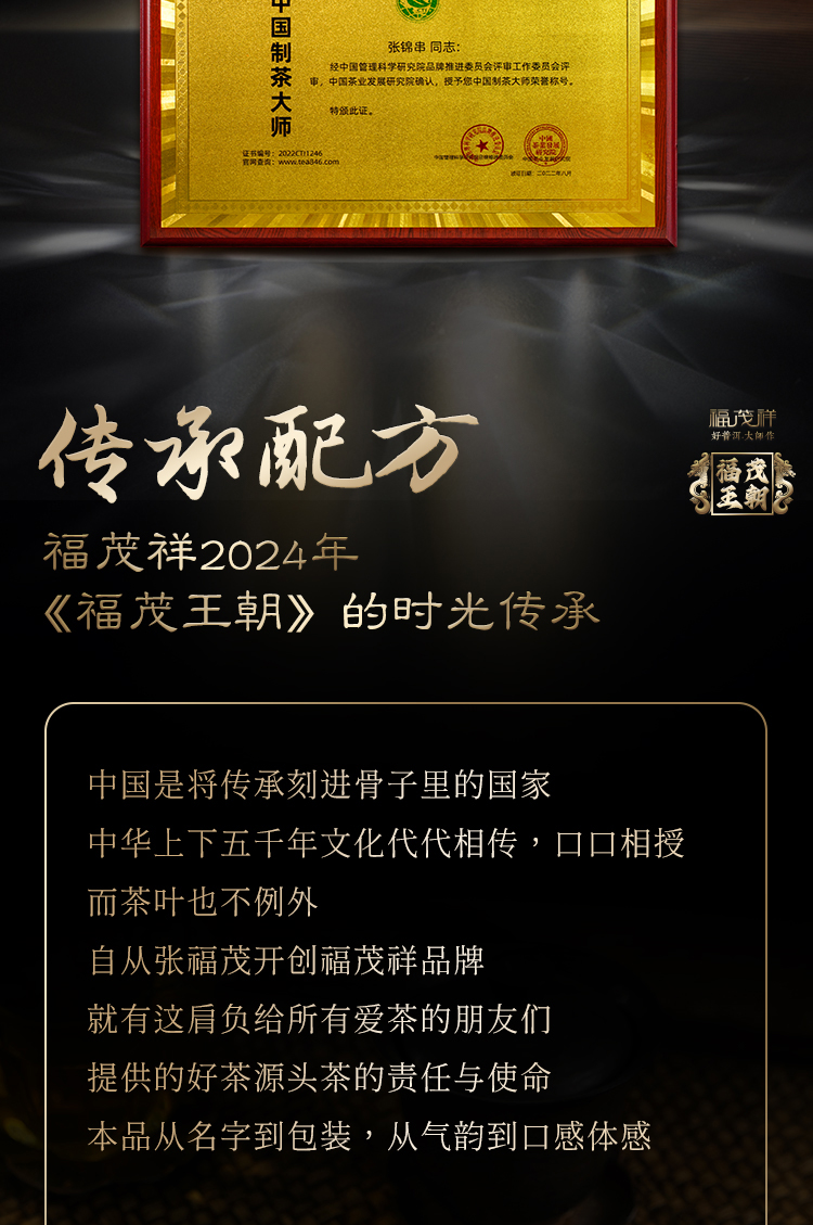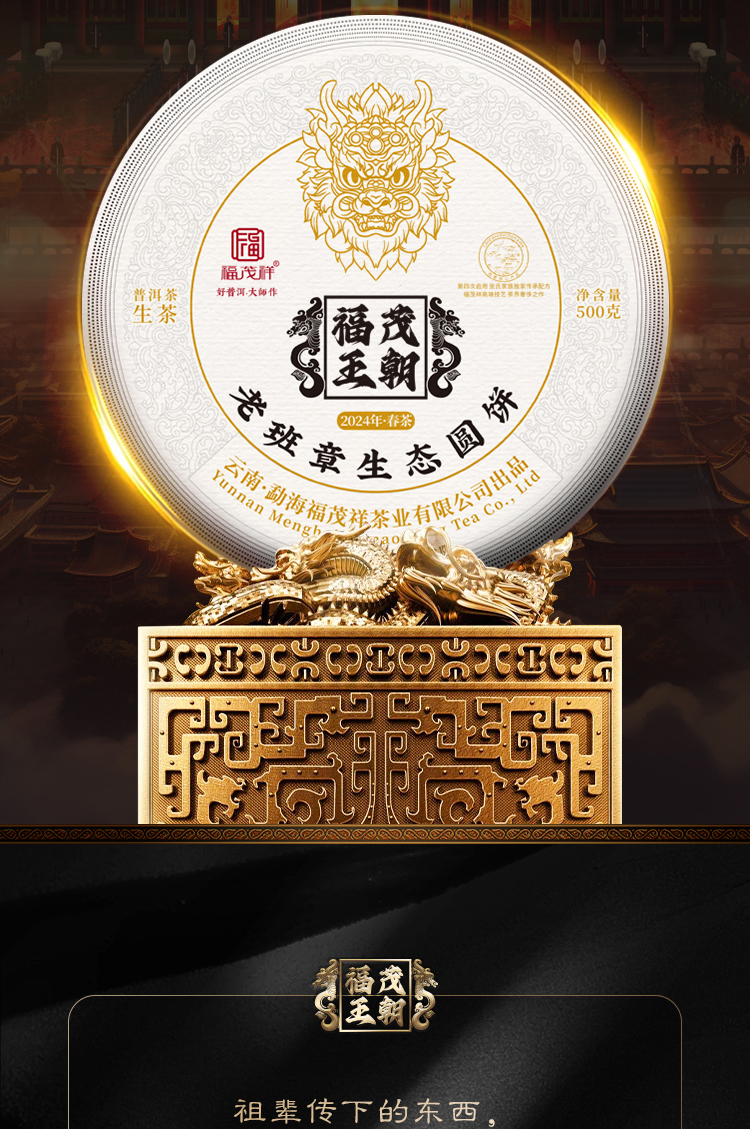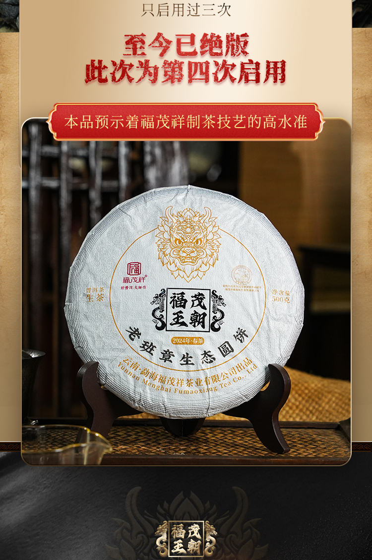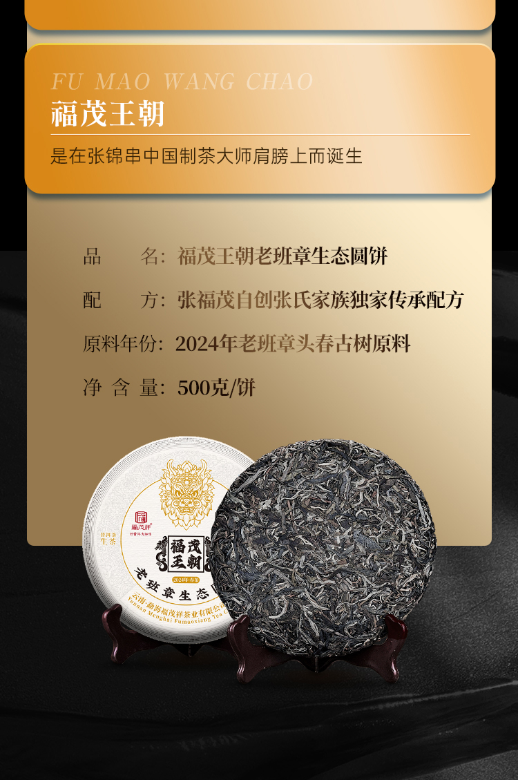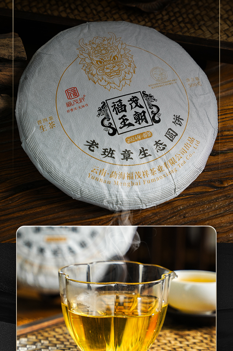 【福茂王朝】张氏家族独家传承配方 福茂祥高端技艺茶界奢侈之作 2024年春茶勐海茶区老班章普洱古树生茶饼500g