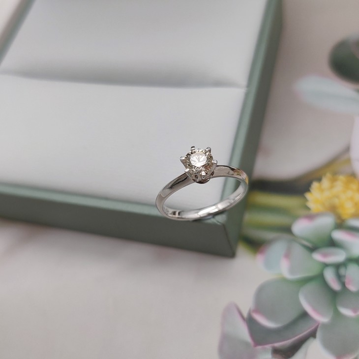 18K钻石戒指,金重2.5克,主石0.51ct, 颜色:I-J,净度:SI,圈号12#,火彩一流, 爆闪耀眼夺目,经典百搭 , 上手超级好看,现货超低价