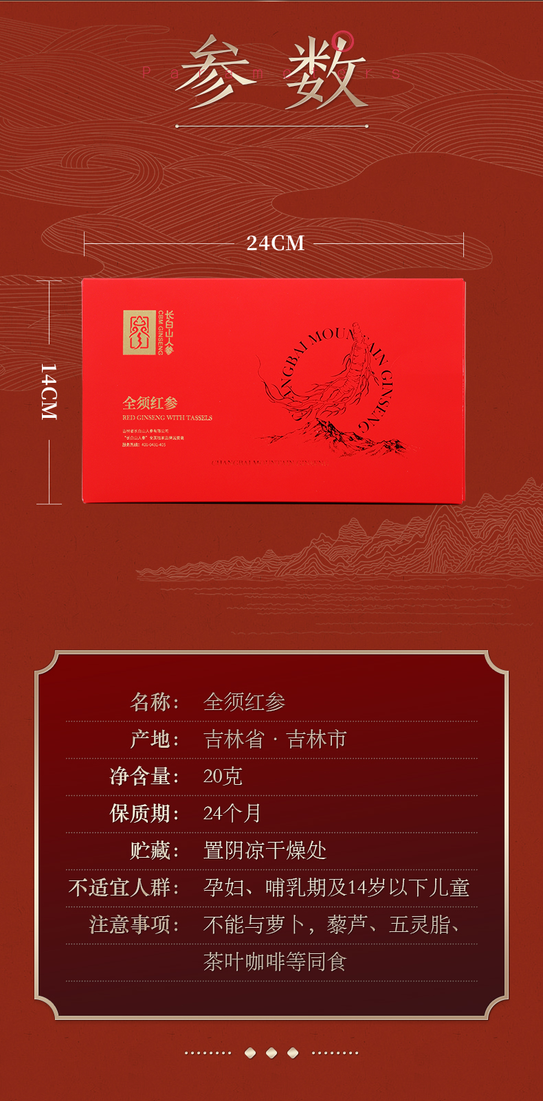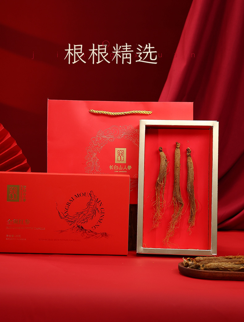 【到手4盒】长白山人参全须红参礼盒20g*4盒+2手拎袋