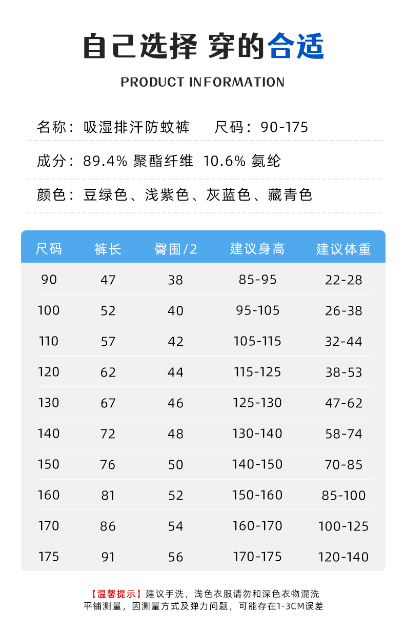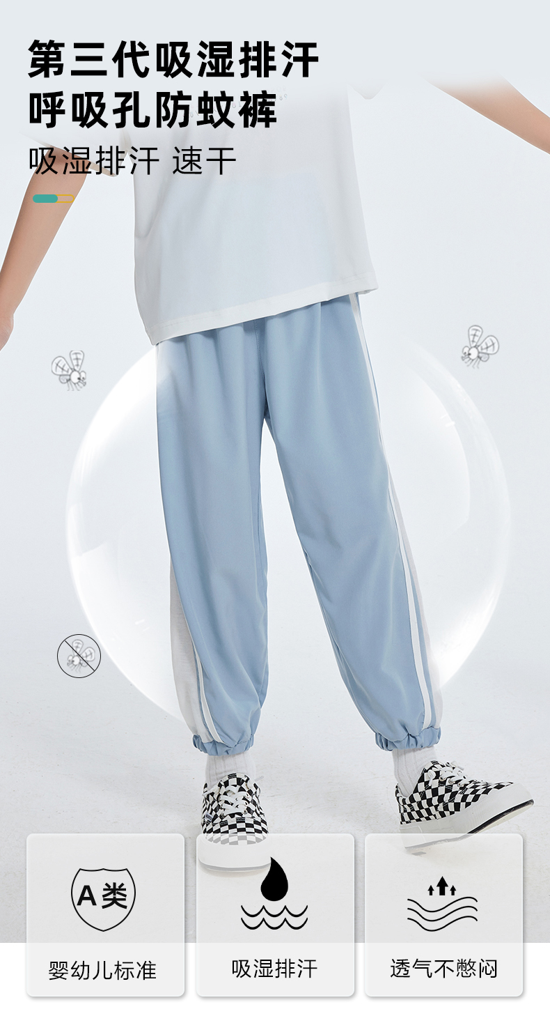 【黑科技●超吸湿排汗 超速干 自带小风扇●超凉爽】龙之涵 亲子款吸湿排汗防蚊裤防蚊神器 婴幼儿A类标准