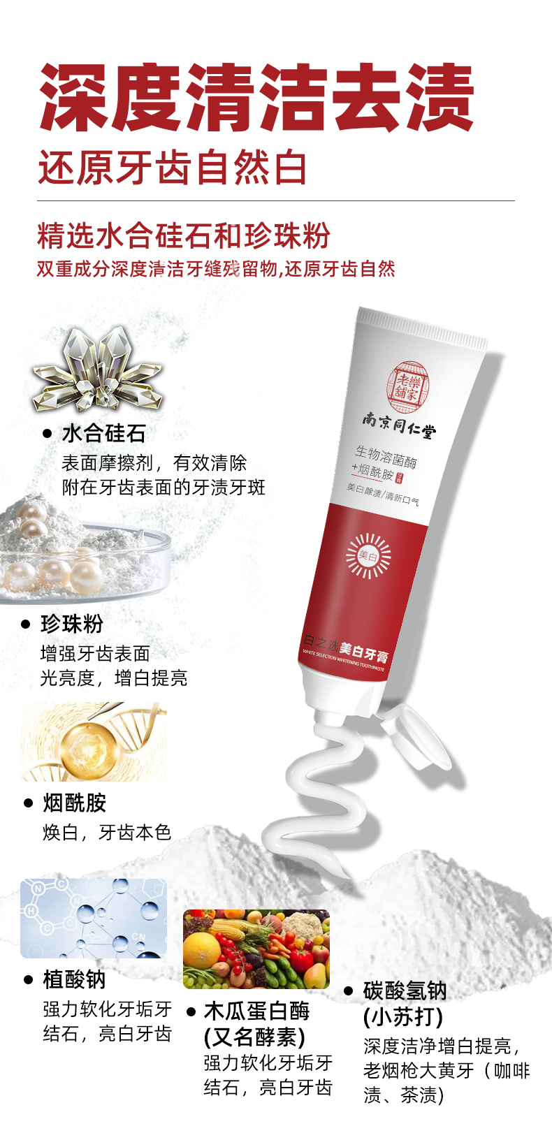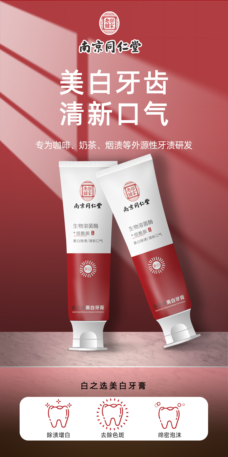 【洗护牙齿 拍一发二】牙膏烟酰胺南京同仁堂牙膏粤国牙膏网备字2023404161酵素去黄氨基酸美 白牙膏