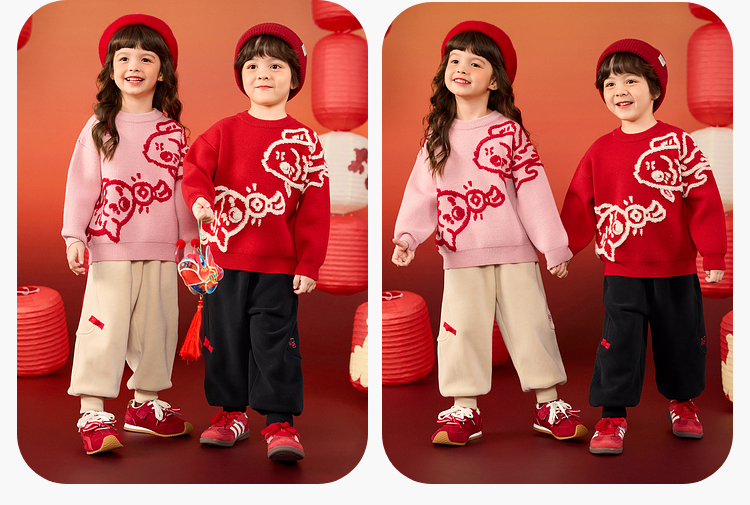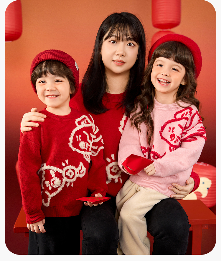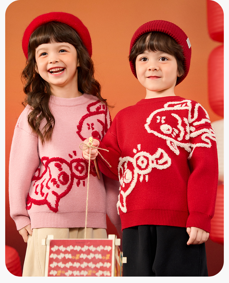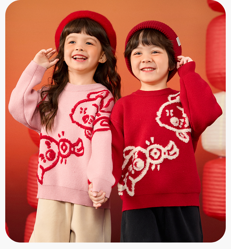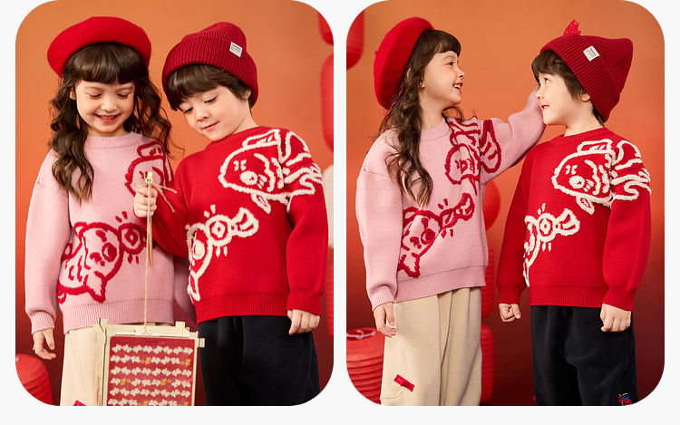 【亲子款】嘟嘟家儿童毛衣男童女童冬季上衣宝宝新年喜庆拜年服婴儿过年衣服