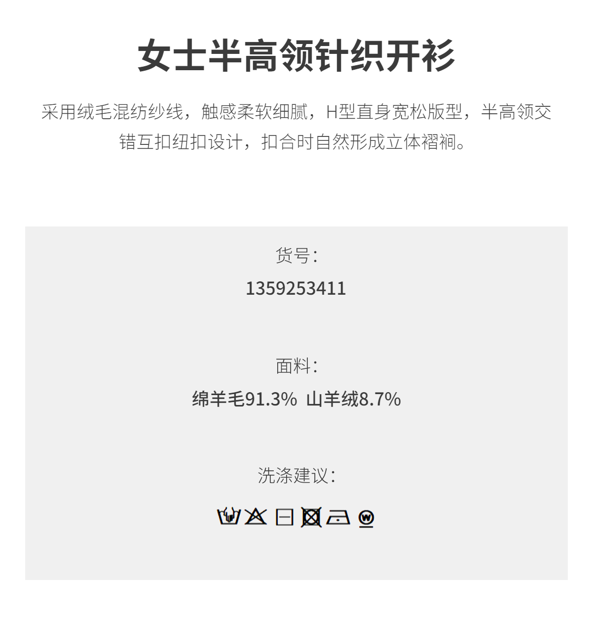 PURE TOUCH女装 25秋冬新款绒毛混纺半高领针织开衫直身宽松外搭