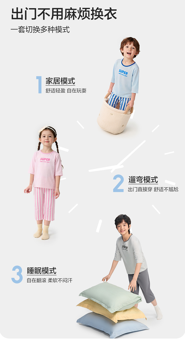 巴拉巴拉儿童睡衣套装夏季薄款空调服男女童家居服小童中大童纯棉