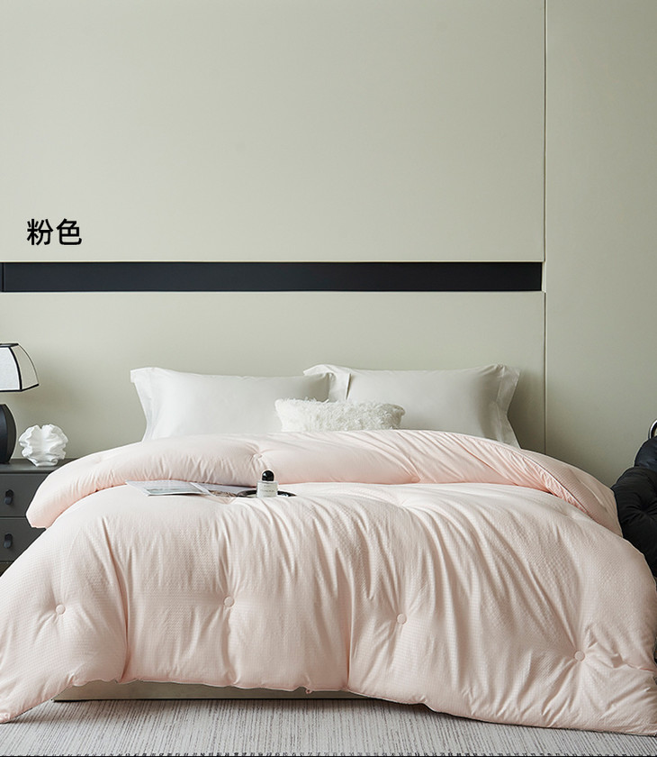 粉似晨雾揉碎的霞光,色调温润不艳俗, 带着淡淡的温柔感,铺在床上像裹了层软绵的甜意, 让卧室瞬间多了份灵动清新,尤其适合喜欢温馨氛围的空间。