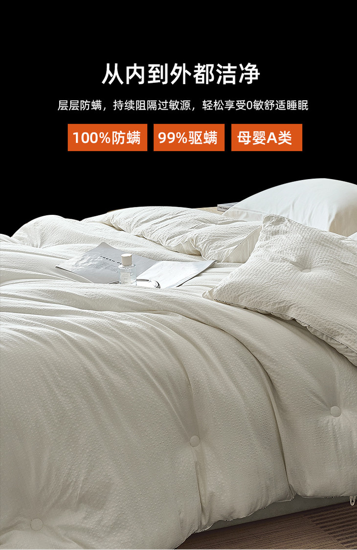 这款被子的安全等级,早已拉满至母婴级守护天花板—— 符合 A 类婴幼儿标准,安全放心用 不止于安全,其贴肤质感更堪称奢享,指尖抚过便知,面料软得像揉碎的云絮, 裹在身上时,肌肤能清晰触到乳脂般的糯滑,完全没有普通面料的粗糙磨肤感。 无论是敏感肌人群怕刺激、老人肌肤怕摩擦,还是小孩好动怕不适, 它都能以 “零刺激、超柔贴” 的特质温柔承托,从材质源头为每一类人群筑牢 “舒适 + 安全” 的睡眠防线, 让每一次躺卧都成为 “肌肤与面料的温柔对话”