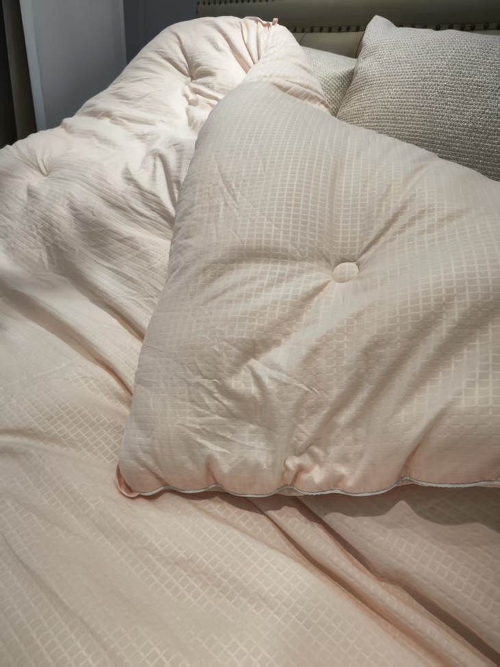 土耳其进口云柔棉床品:把“暖糯、防螨、耐用”织进每一夜睡眠 🔹面料:土耳其进口创新云柔棉,触感与功能的双重奢享 精选土耳其进口创新云柔棉,纤维自带天然糯感,指尖触及时便如云朵裹肤般软绵; 面料表面雕琢立体小方格透气孔,宛若无数个“隐形呼吸窗”——既保留天然棉的温润肌理,又让空气能自由流通,告别闷汗黏腻。 更惊喜的是其保暖力:纤维蓬松度堪比羽绒,能在面料间锁住暖空气,却无羽绒的压身感,寒冬钻进被窝瞬间被暖意包裹,暖得轻盈、暖得不闷,连翻身都带着“被软云托住”的惬意 🔹填充:英威达防螨纤维,给睡眠设下“健康屏障” 填充选用英威达专业防螨纤维,不靠化学药剂,而是凭借铵阳离子物理穿刺技术 纤维自带的铵阳离子会主动穿刺螨虫、细菌的细胞壁,使其丧失活性,从根源切断过敏原,连母婴、敏感肌都能安心贴肤睡,再也不用为“床品藏螨”犯愁 🔹细节:从安全到耐用,每处都藏着匠心 母婴级A类安全认证:从面料到填充、印染,全链路符合母婴A类标准,无甲醛、无荧光剂,贴肤接触零刺激,给家人最安心的睡眠守护 精密定点绗缝工艺:用均匀的定点绗缝像给填充料安了“定位锚”,不管怎么机洗、翻身,填充都不会移位结块,既保持床品的挺括精致,又延长使用寿命 活性印染+可机洗:采用高牢度活性印染工艺,色彩牢牢锁在纤维内部,机洗百次也不褪色、不变形;日常清洁无需费心手洗,扔进洗衣机就能恢复洁净,懒人也能轻松打理 躺卧时,云柔棉的软绵会温柔承托身体,无半点僵硬感 从颈肩到脚踝都能放松下来,真正实现“无压力安睡一整晚” 把高端材质的舒适,揉进每个睡眠瞬间。