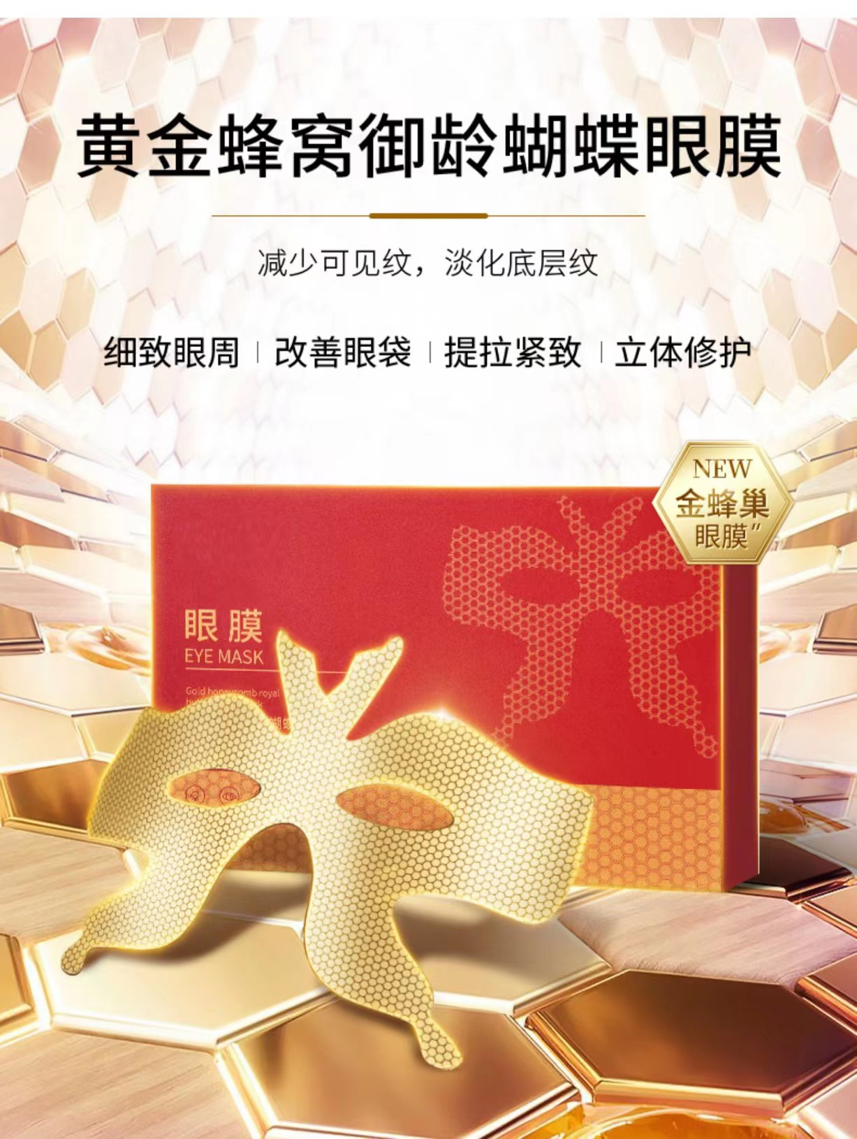 【明星同款年龄隐藏密术】黄金蜂窝御龄蝴蝶眼膜 淡化眼周细纹改善眼袋