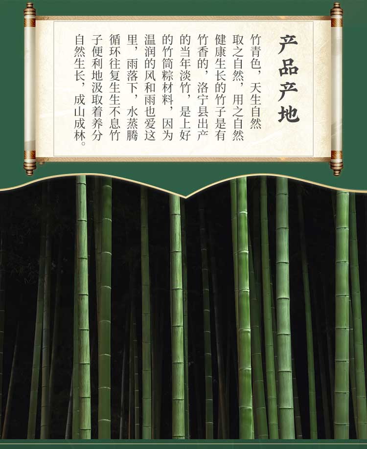 竹子,自古以来便有药用价值,能清热、生津降火、健脾通胃。寻味竹粽采用洛宁县出产的当年淡竹,是上好的竹筒粽材料,比起传统的粽子更清香、更健康,是全家老少都适合的绿色天然食品。