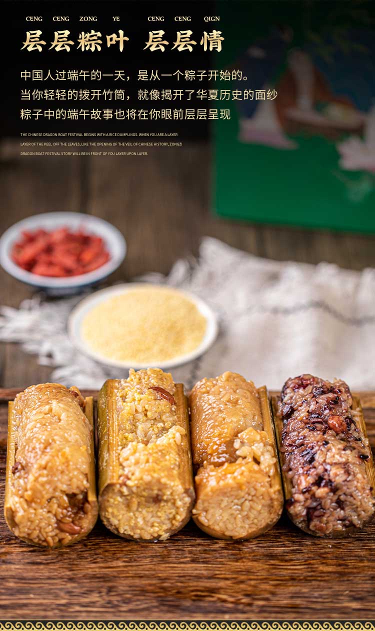寻味竹粽,竹甜且粽香,粽入竹中,香竹清甜入侵到食材中,带着山里的自然竹香,竹筒粽才是打开端午的正确方式,礼盒包装4种口味搭配。