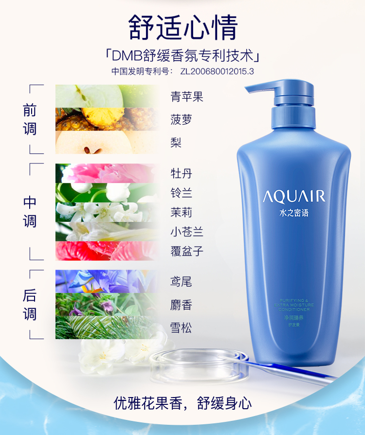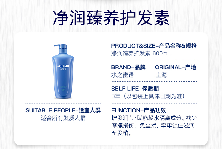 水之密语(AQUAIR)净润臻养护发素600ml 滋润保湿 改善干枯 强韧修护 男士女士通用