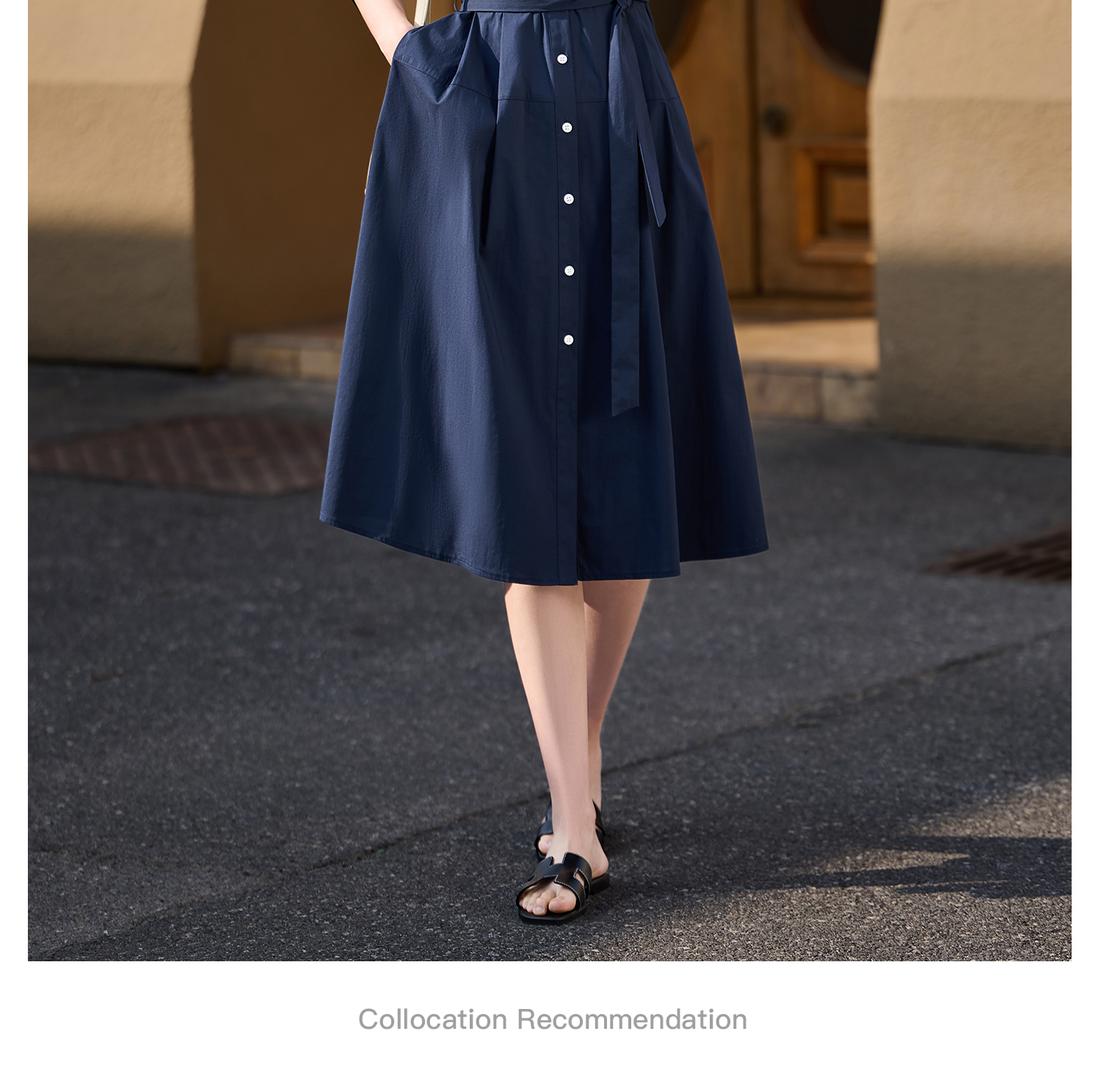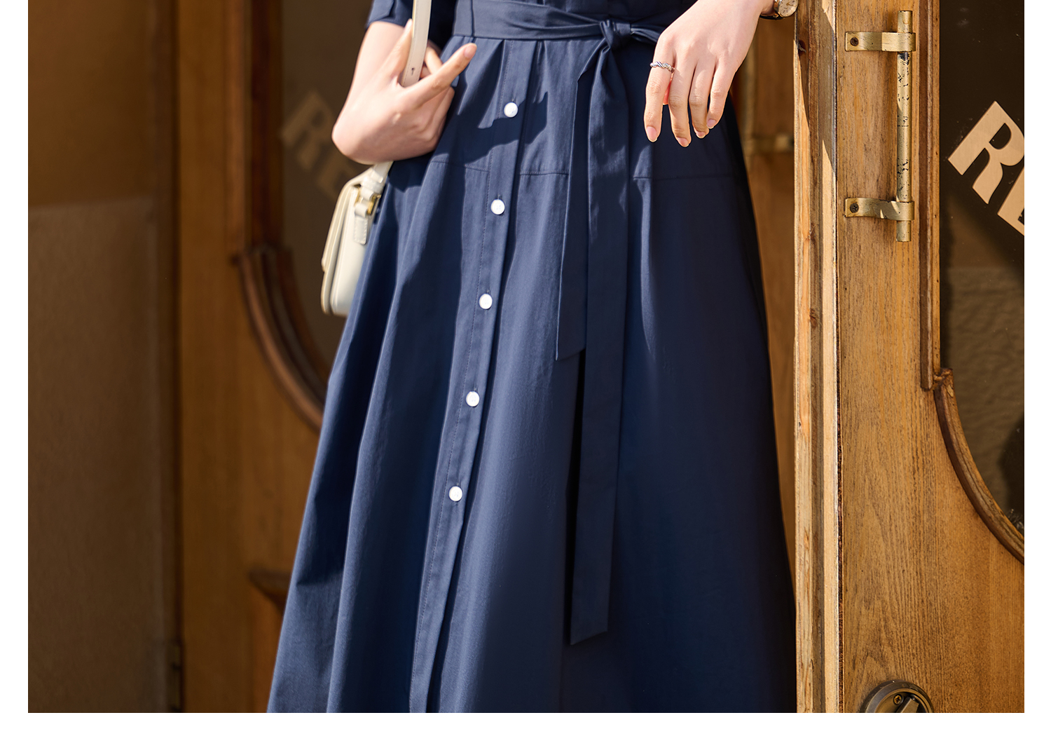 不挑人系列~ 可休闲可通勤的棉感衬衫裙 米思阳2026春季新款五分袖时尚显瘦连衣裙修身收腰大摆裙女中长款连衣裙2139
