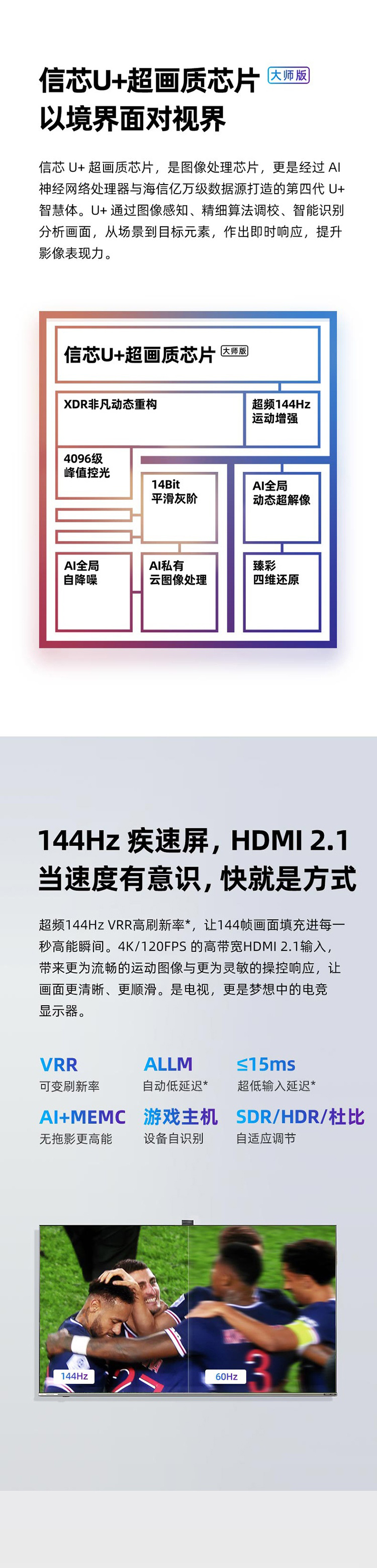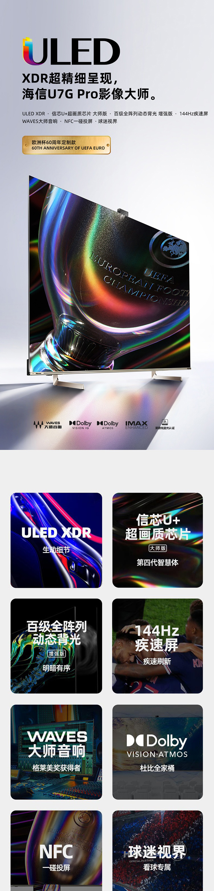 海信(Hisense)55U7G-PRO 55英寸 ULED XDR WAVES音响 4k超清全面屏液晶智能平板电视机 欧洲杯冠军系列