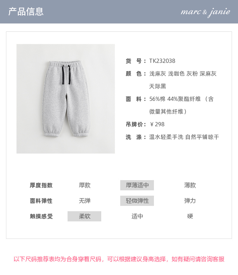 【加绒】马克珍妮男童女童宽松运动裤 儿童束脚裤冬装新款232038