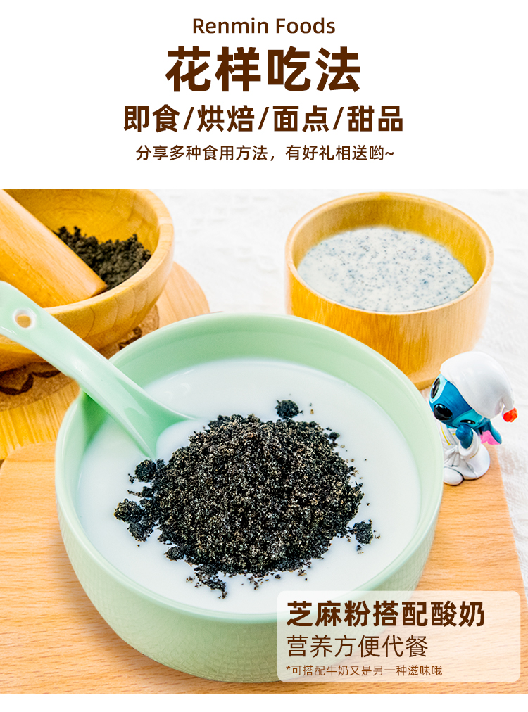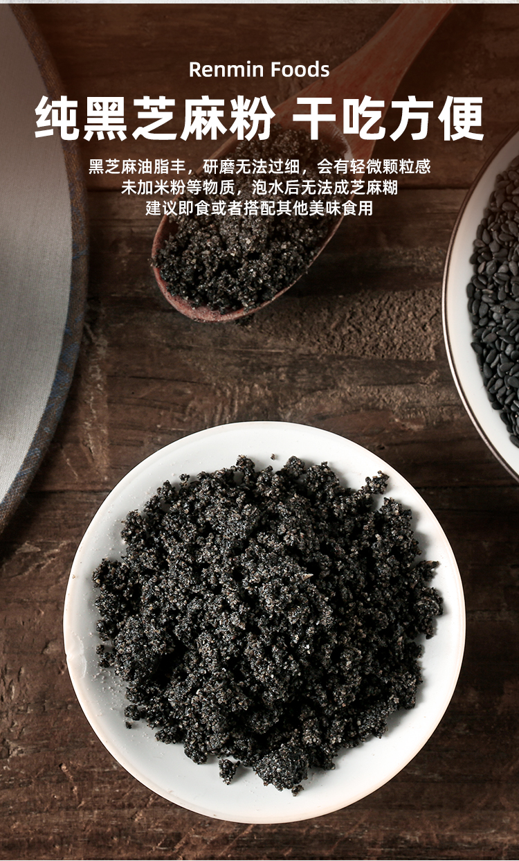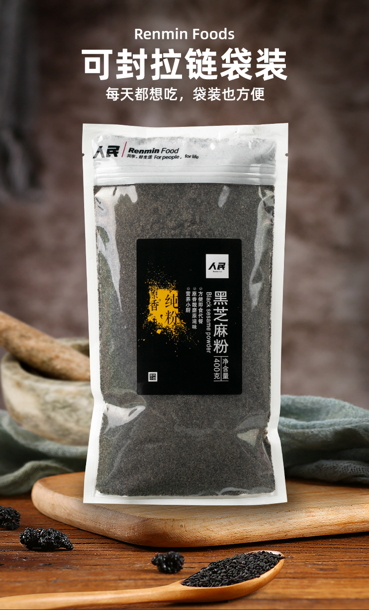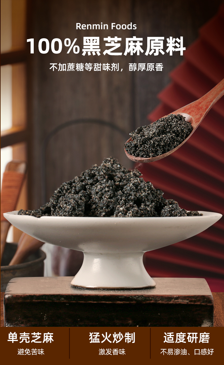 人民食品纯黑芝麻粉熟即食代餐粉黑芝麻糊汤圆馅粉芝麻糊400g