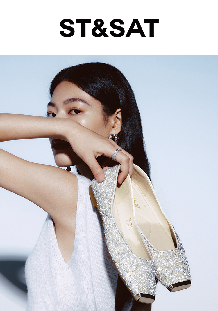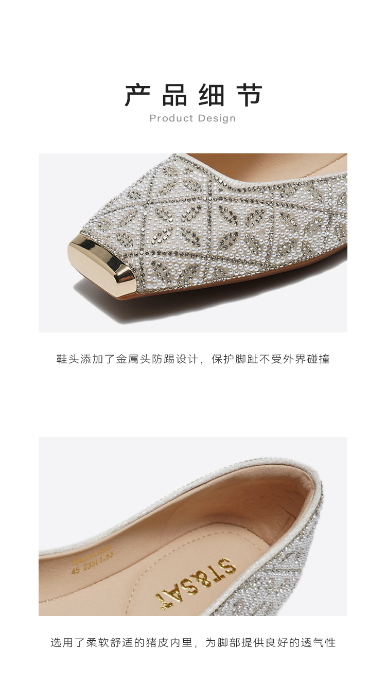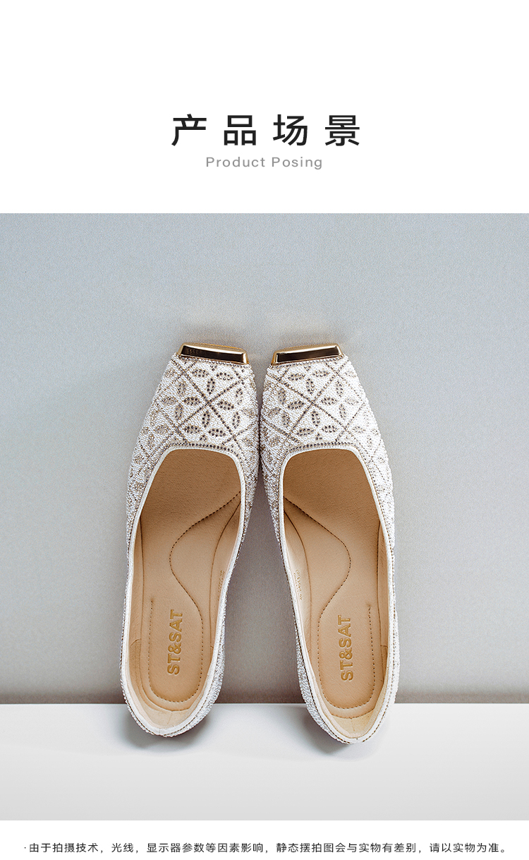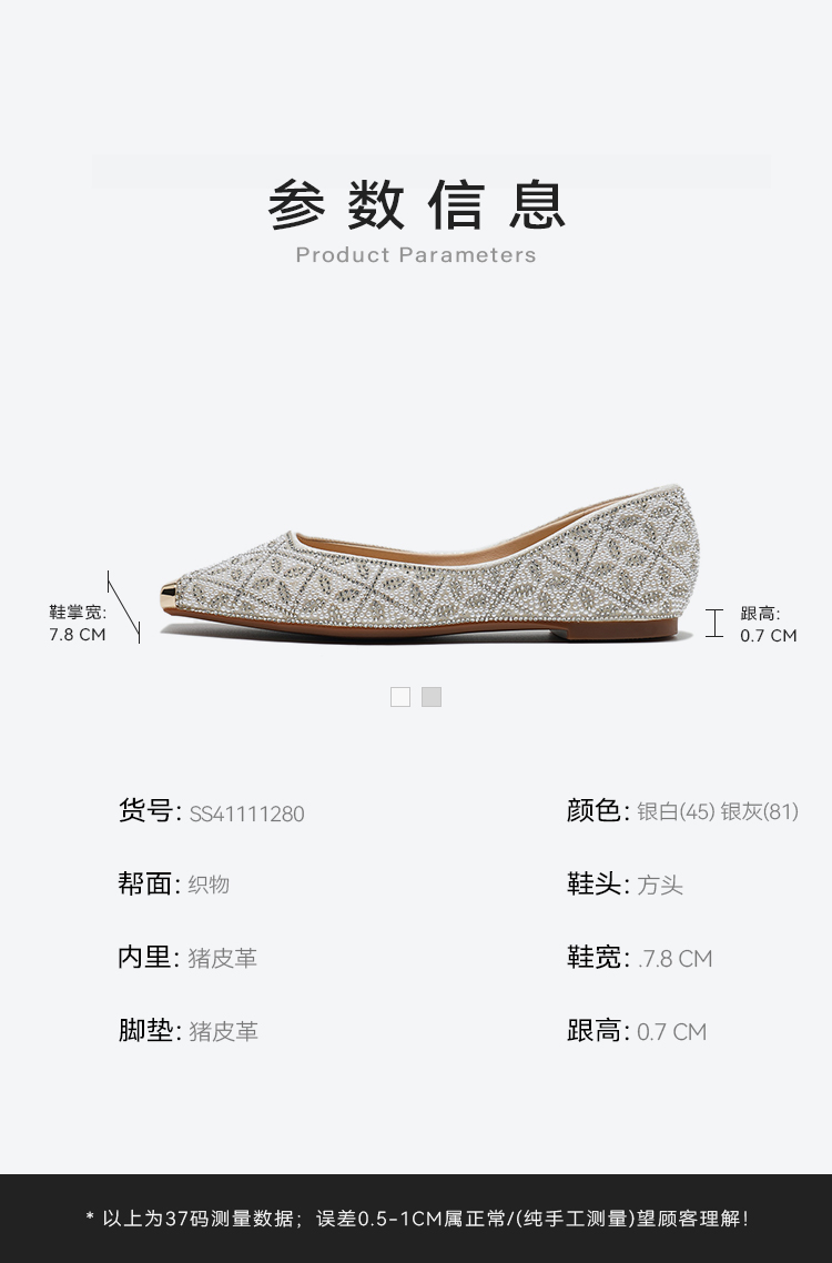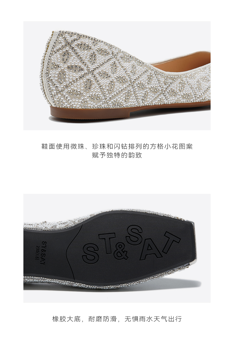 星期六优雅金属方头闪钻平底鞋SSD1111280