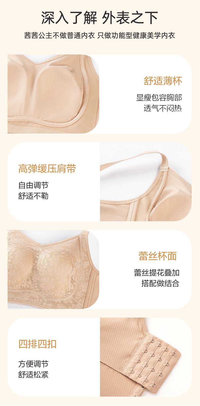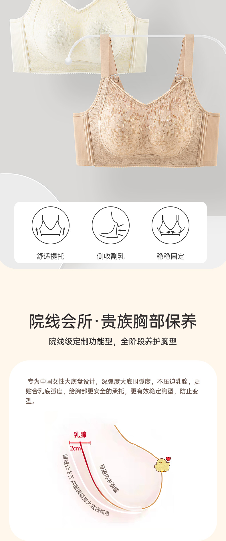 大胸显小 全罩杯 无钢圈 轻薄透气水晶杯文胸