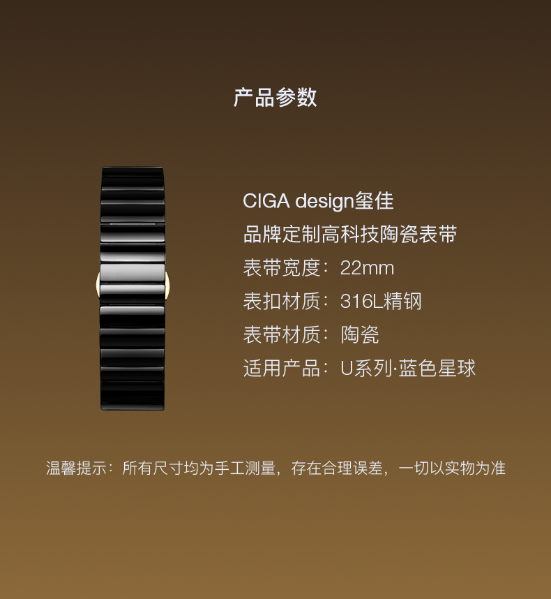 CIGA Design玺佳机械表U系列蓝色星球鎏金艺术版陶瓷表带 鎏金表带