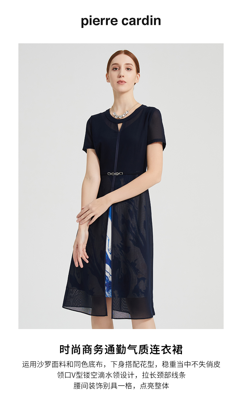 皮尔卡丹女装年夏季新款法式优雅知性端庄连衣裙P1225D1047F0
