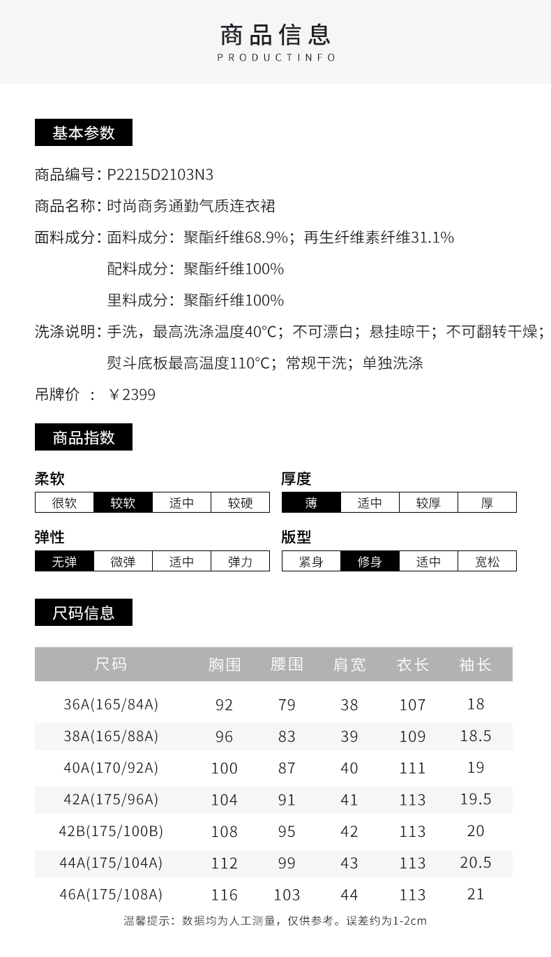 皮尔卡丹女装通勤淑女百搭修身淑女连衣裙P0318DL14L0