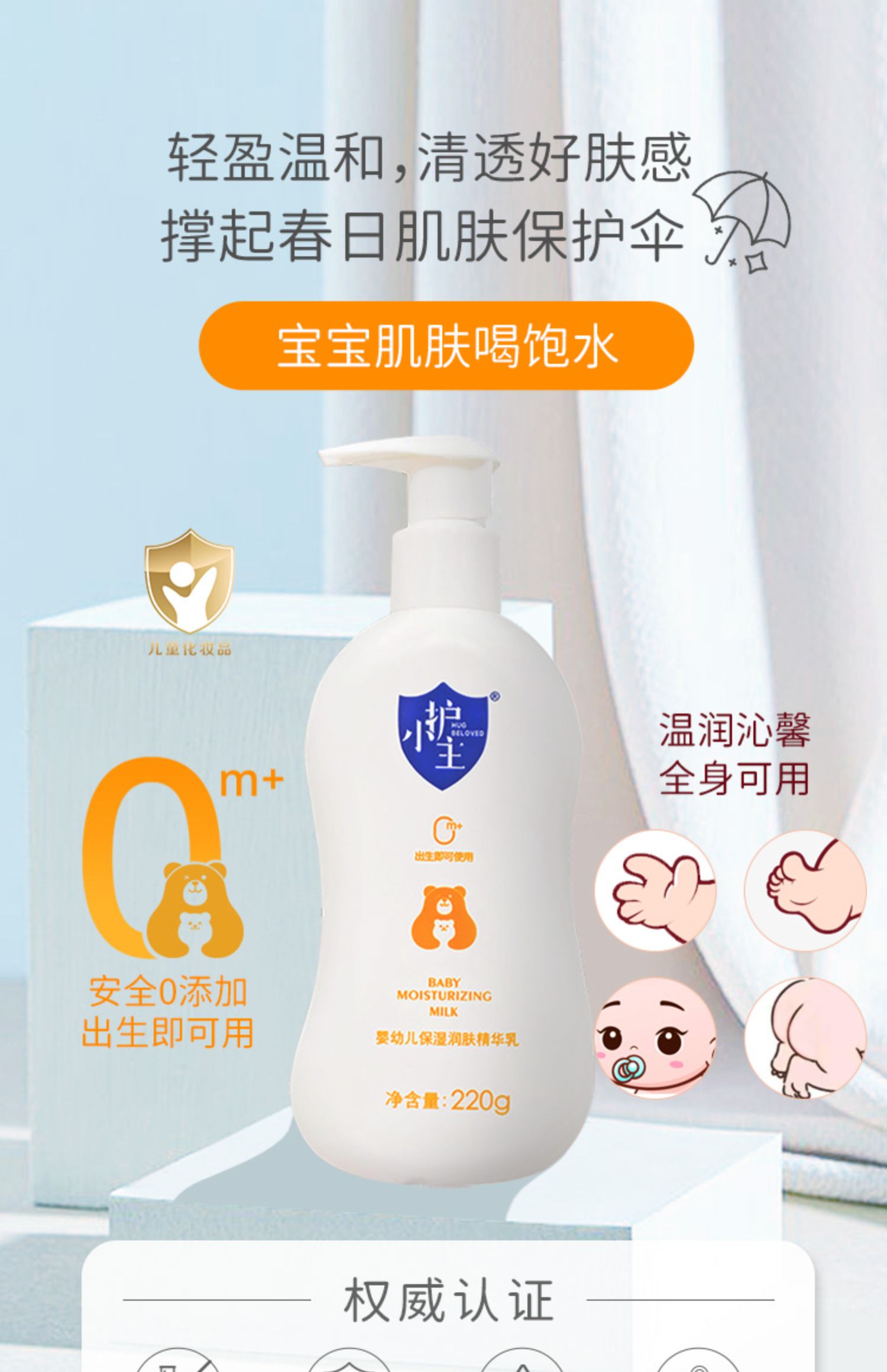 护小主婴幼儿保湿滋润精华补水润肤乳220g