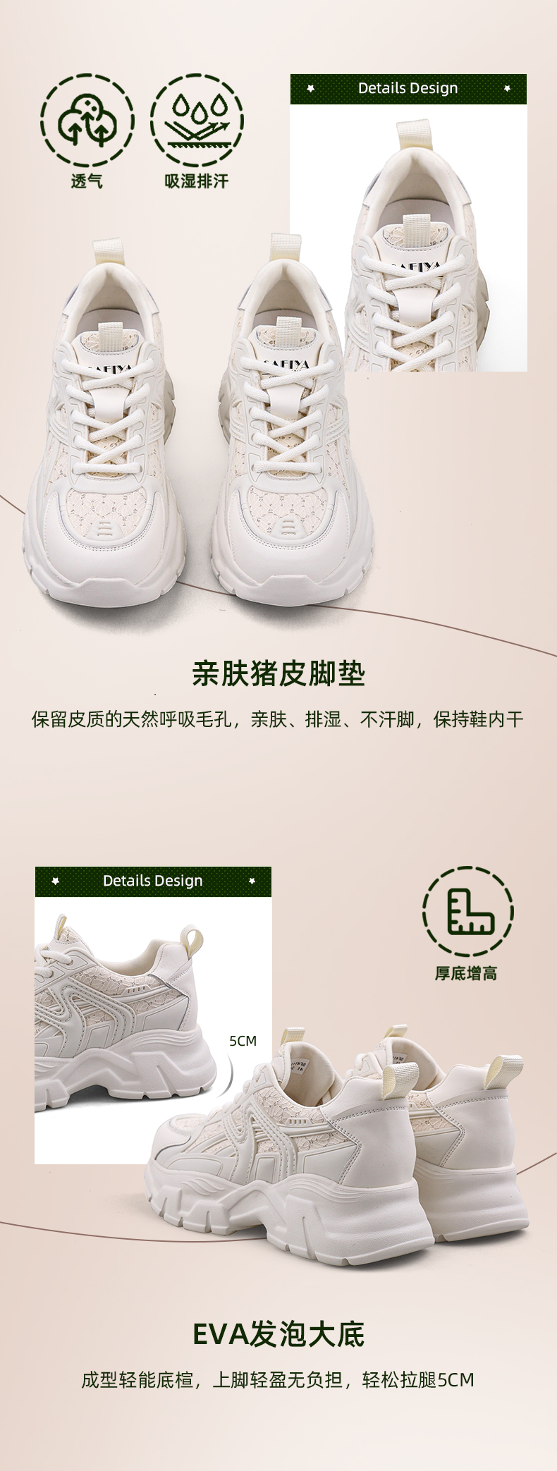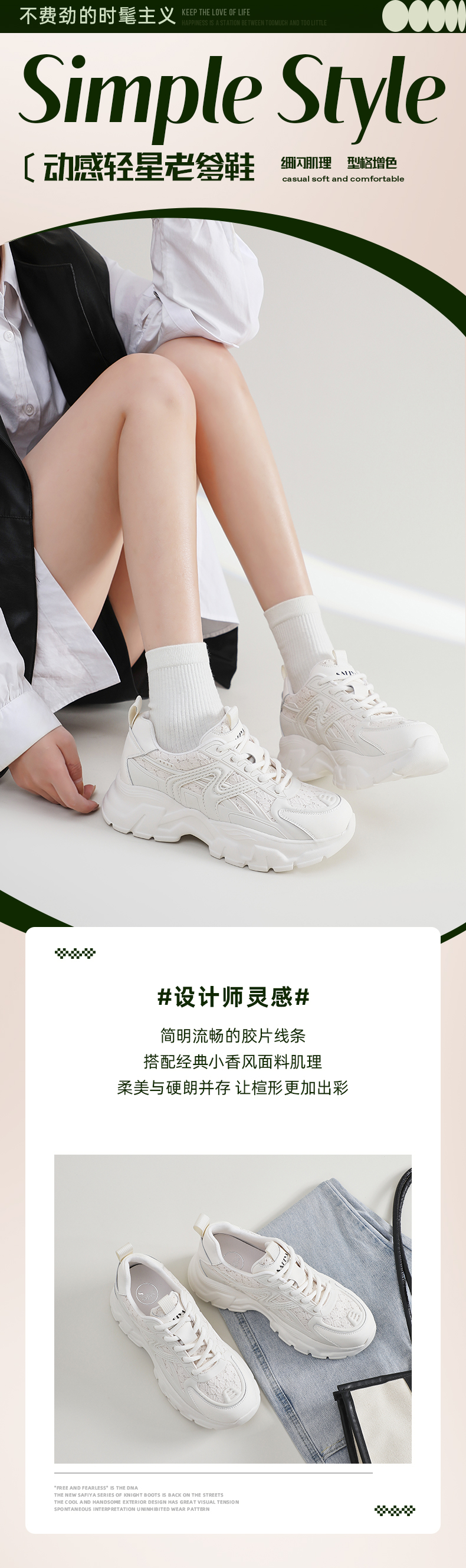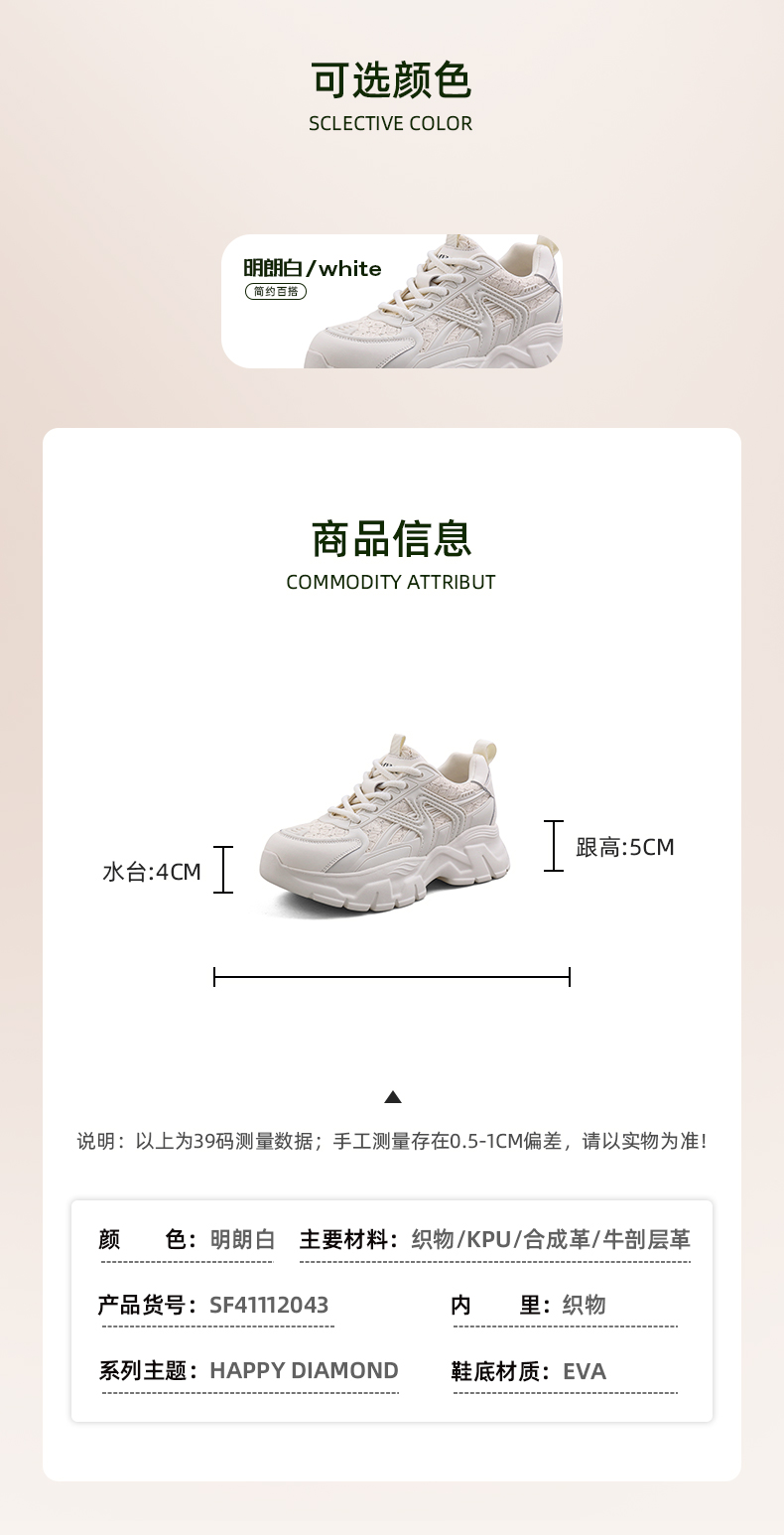 Safiya/索菲娅 2024新品早春轻便百搭增高厚底小香风运动老爹鞋 SF41112043